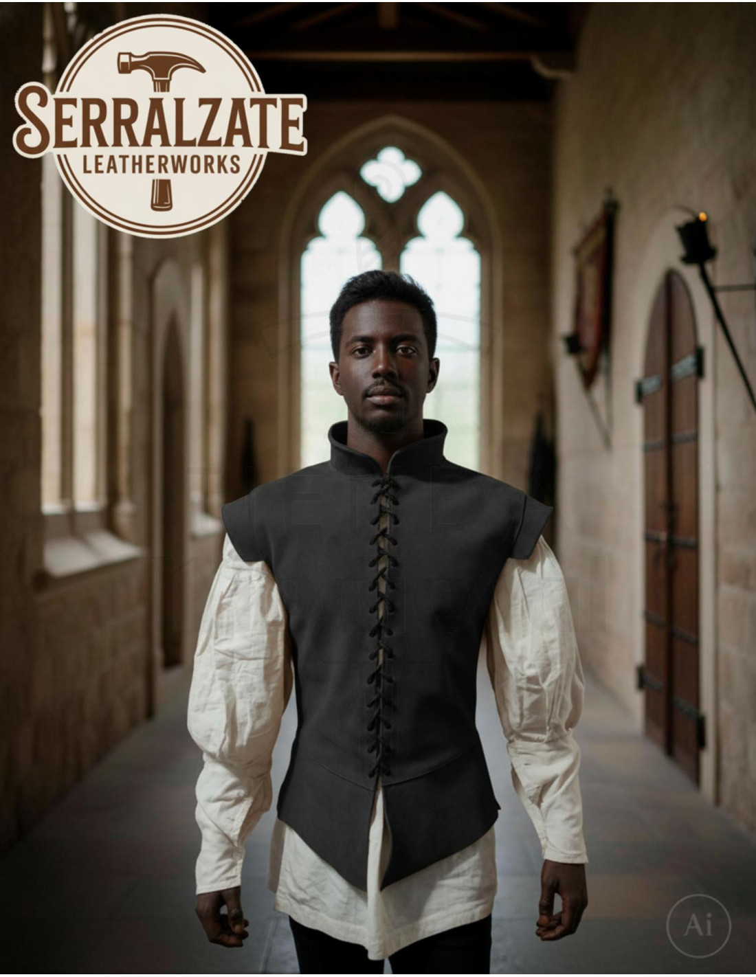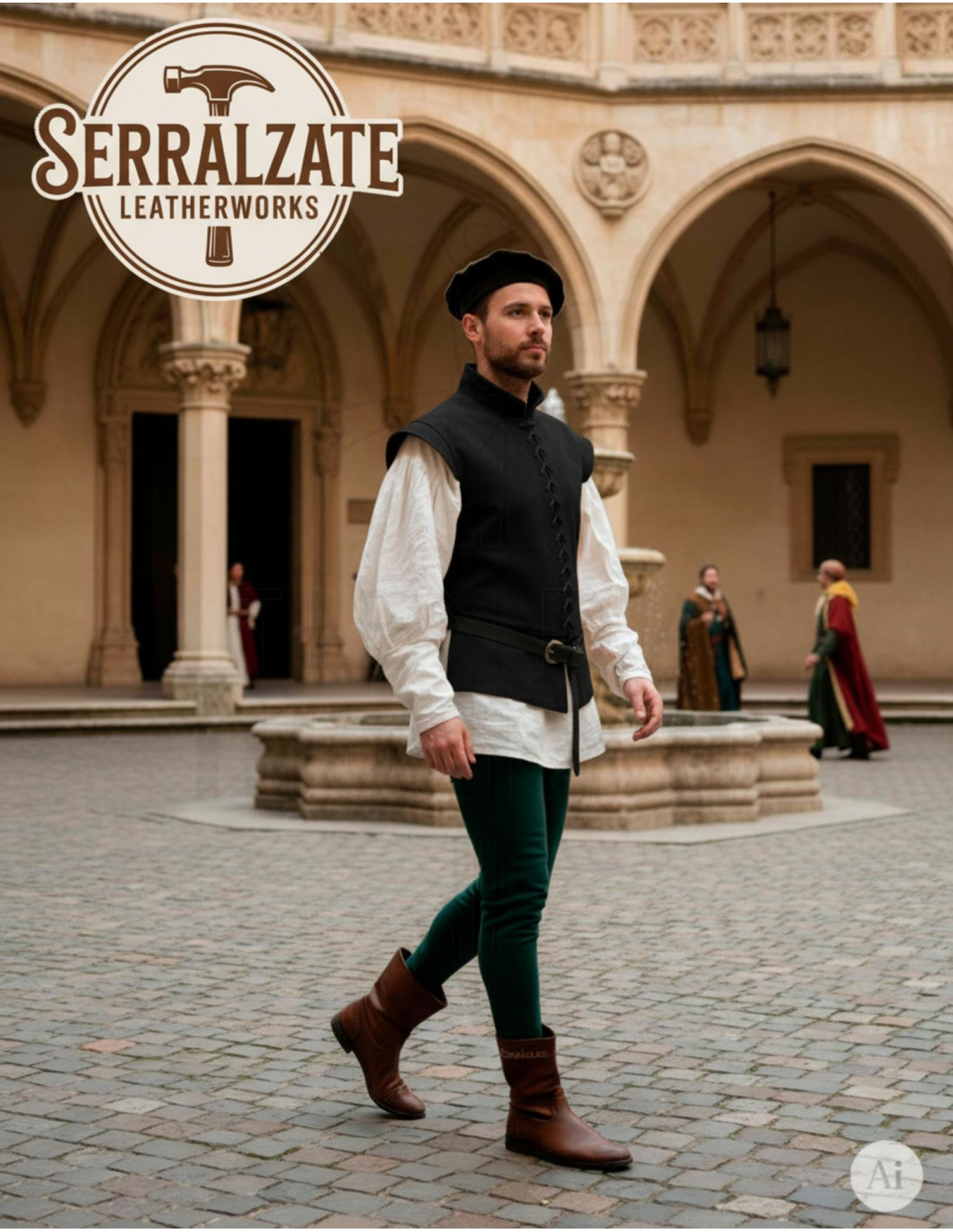 Si quieres comprar Jubón medieval y renacentista en piel de ante negro, aquí tienes una pieza que promete transformar tu apariencia con carácter y confianza, aportando un toque de legado y artesanía en cada costura.