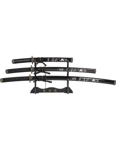 Imagina tener en tus manos un legado de tradición samurái, un conjunto que captura la esencia de la destreza y la elegancia de los guerreros. Este set, que incluye una katana, un wakizashi y un tanto, es más que una mera colección de espadas; es una verdadera obra de arte.