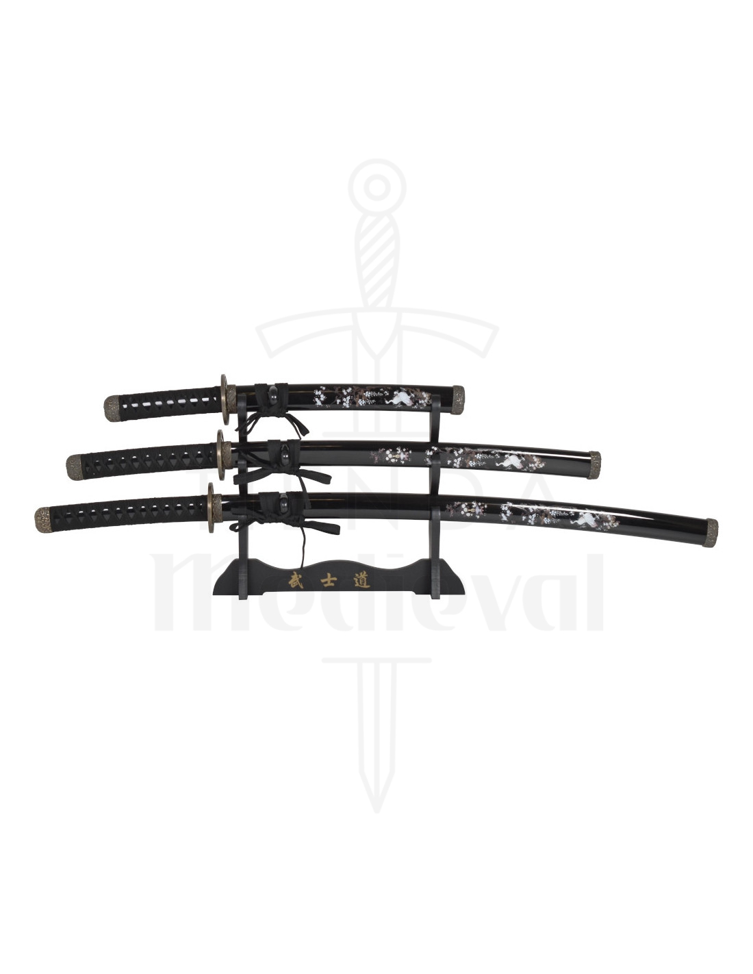 Este set no es solo para los coleccionistas de espadas, sino para cualquier amante de la cultura japonesa que desee aportar un toque de distinción a su hogar o colección. No dejes pasar la oportunidad de poseer esta fusión de historia y arte.