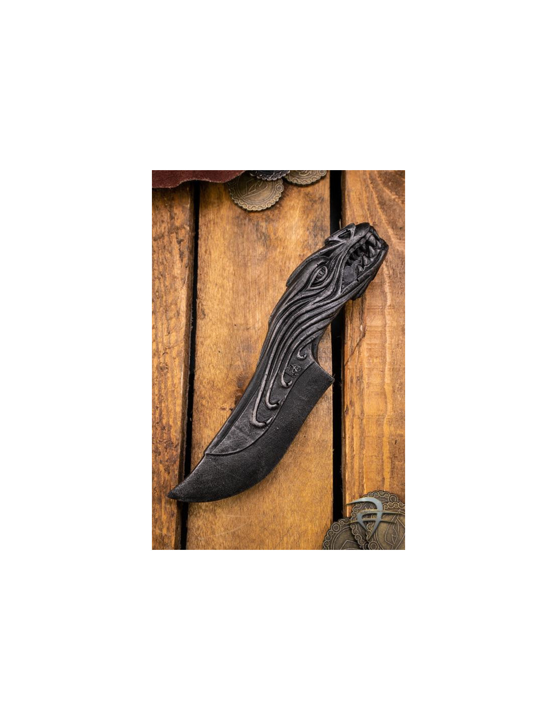 ¡Descubre el cuchillo arrojadizo negro fantástico del Dragón, diseñado especialmente para el LARP y creado por Atelier Fantastic’Art en colaboración con Epic Armoury!