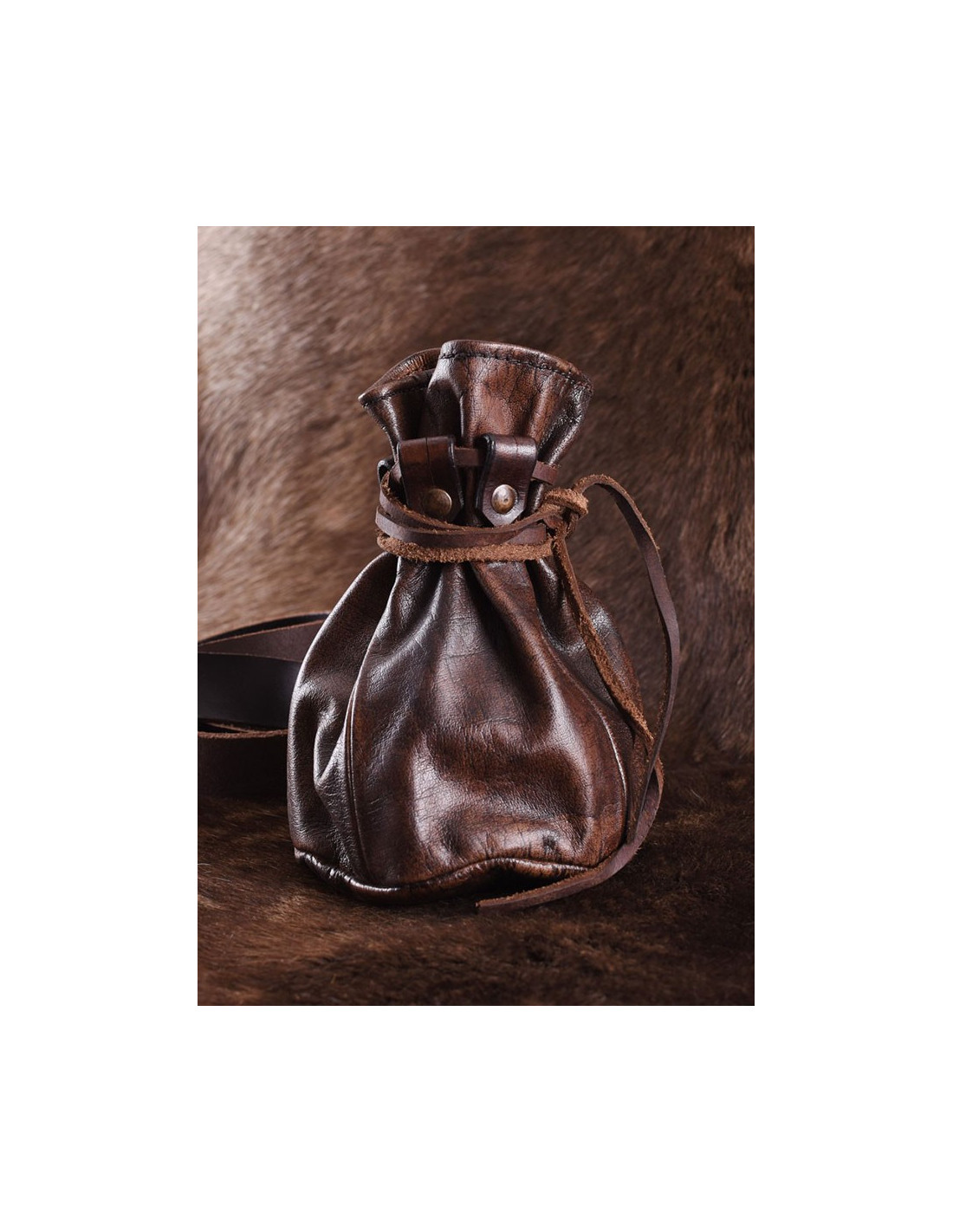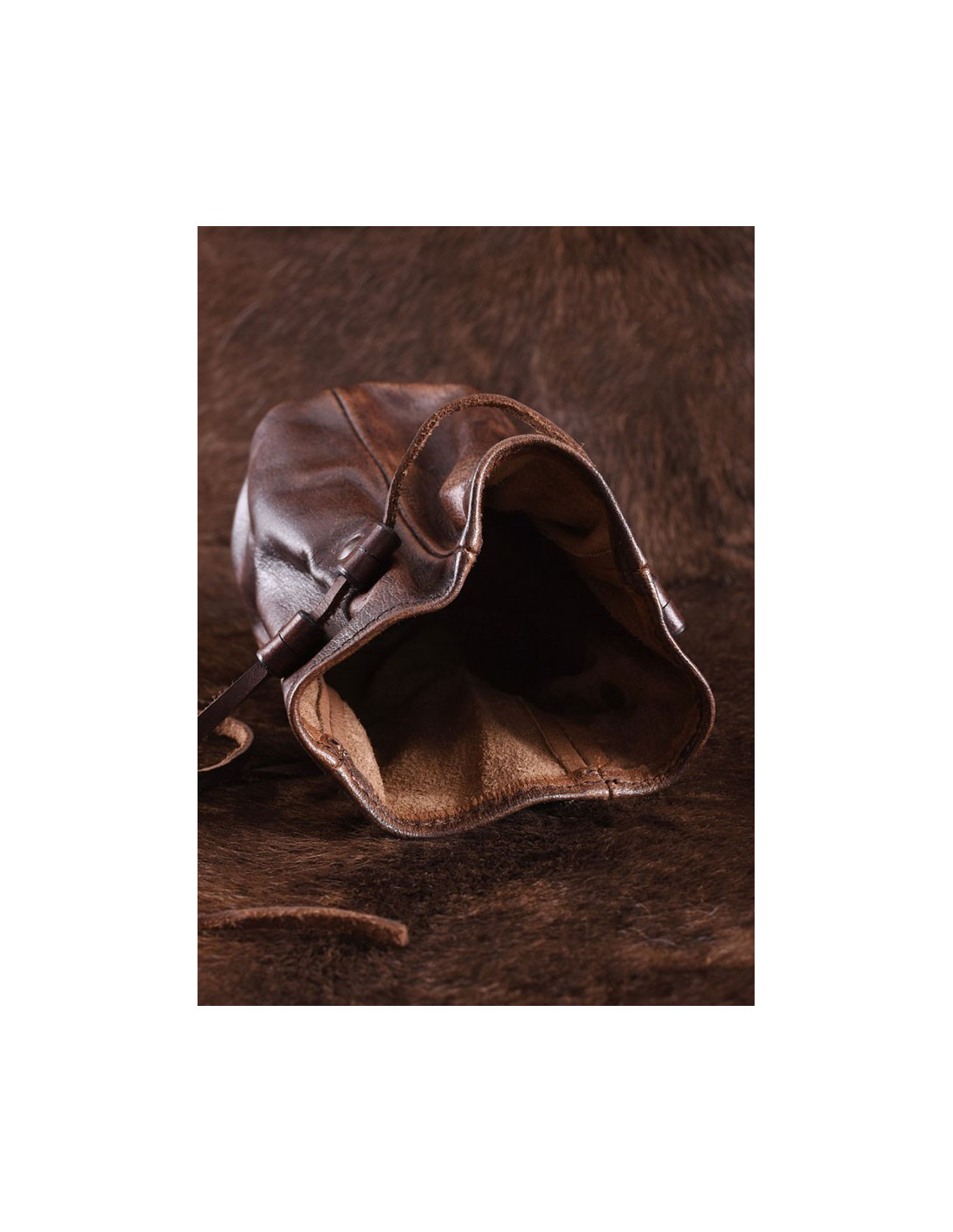 La bolsa está hecha de cuero marrón suave pero resistente, lo que no solo la hace duradera, sino también estilizada y elegante. Su diseño clásico se adapta perfectamente a cualquier atuendo, ya sea que estés en un evento de temática medieval o simplemente saliendo a pasear por la ciudad.
