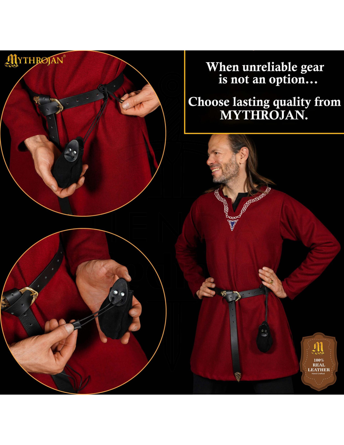 Diseñada siguiendo la tradición “Gold and Dice”, su línea remite a la estética medieval, ideal para recreaciones históricas y eventos LARP, así como para quienes buscan un toque auténtico en su día a día. Su base plana permite apoyarla verticalmente, evitando derrames y facilitando el acceso al contenido, y los remaches metálicos añaden durabilidad y un acabado rústico artesanal.