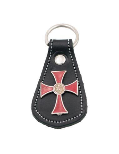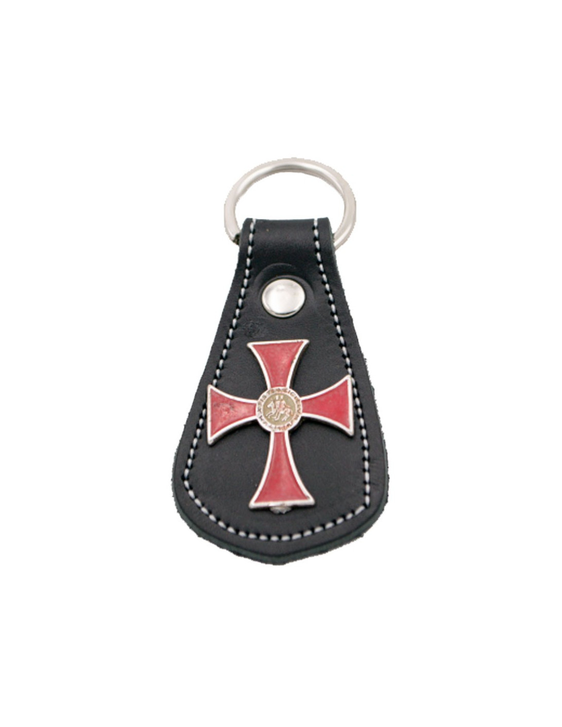 Llavero cuero negro y metal Cruz y sello de los Templarios
