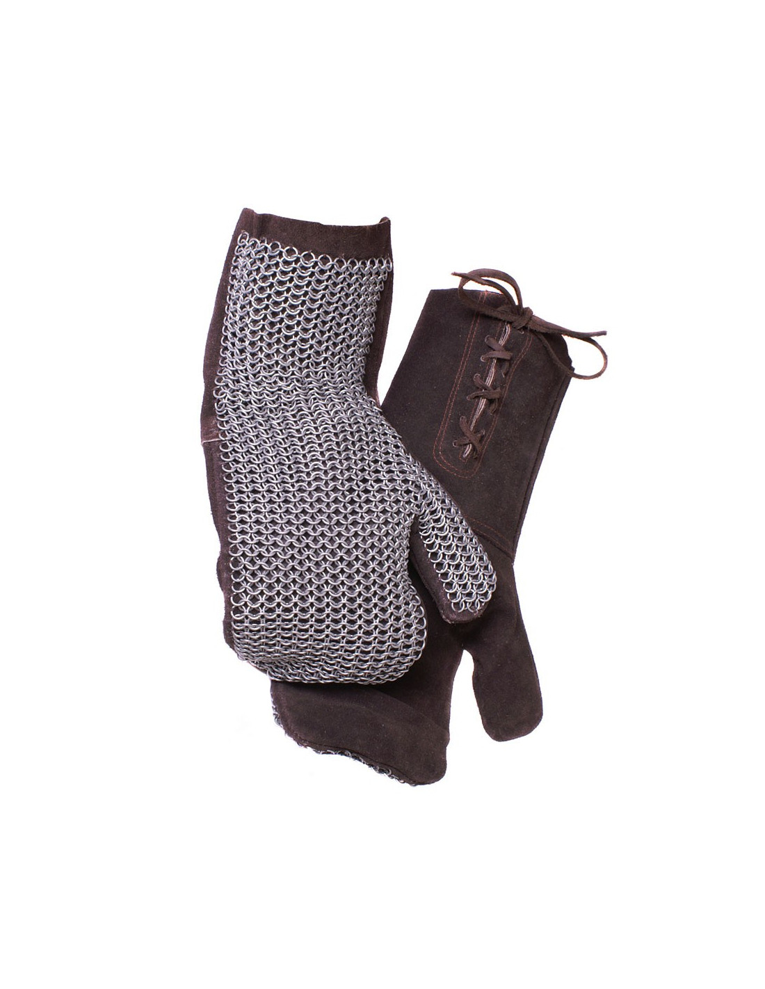 Elaboradas con cuero de alta calidad, estas manoplas no solo te brindan una apariencia imponente, sino que también aseguran una durabilidad excepcional. Su cota de malla, compuesta por anillas de acero al carbono con un diámetro interior de 6 mm, te ofrece una defensa confiable contra impactos y cortes, manteniendo tus manos a salvo en todo momento.