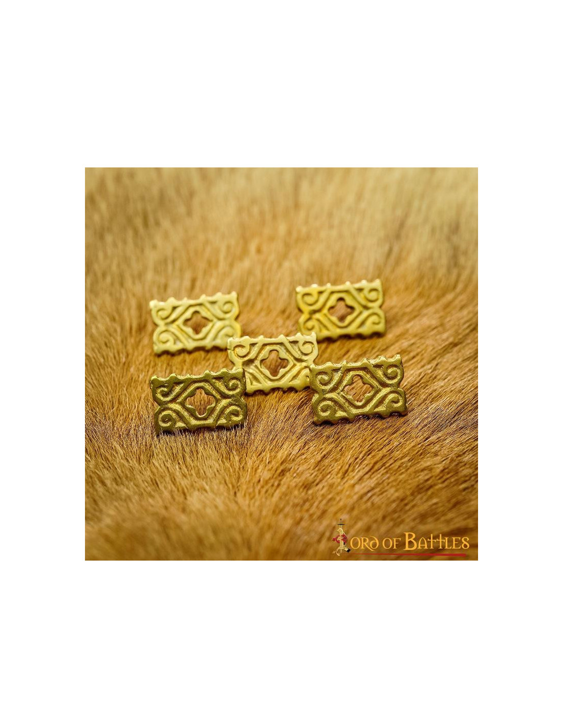 - Versatilidad en el Uso: Ya sea que los añadas a tus cinturones, bolsos o prendas medievales, estos tréboles latonados aportarán ese toque especial que falta en tus creaciones. Son versátiles y se adaptarán a diversas aplicaciones.