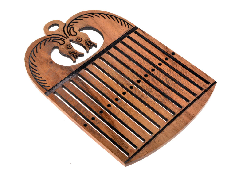 Fabricado en resistente madera de acacia y equipado con 12 lizos y 13 agujeros, este telar es una fiel recreación de los telares utilizados por los vikingos en la antigüedad.