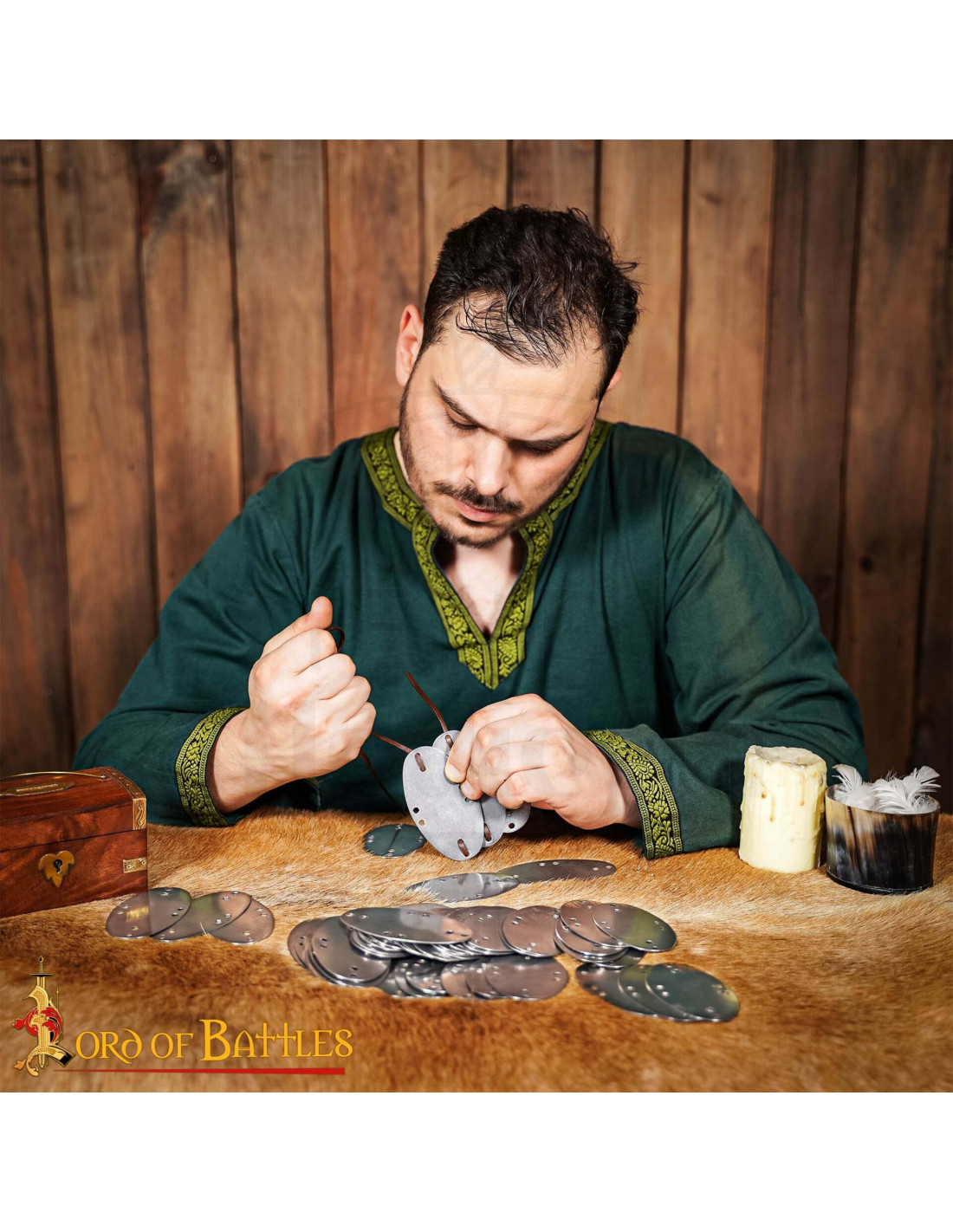 Si tu objetivo es comprar Set 25 placas laminares en acero dulce para armaduras y conseguir un resultado con sello Visby, este set te ofrece piezas coherentes entre sí, listas para integrarse en una coraza que respete las proporciones y estética de las fuentes arqueológicas.