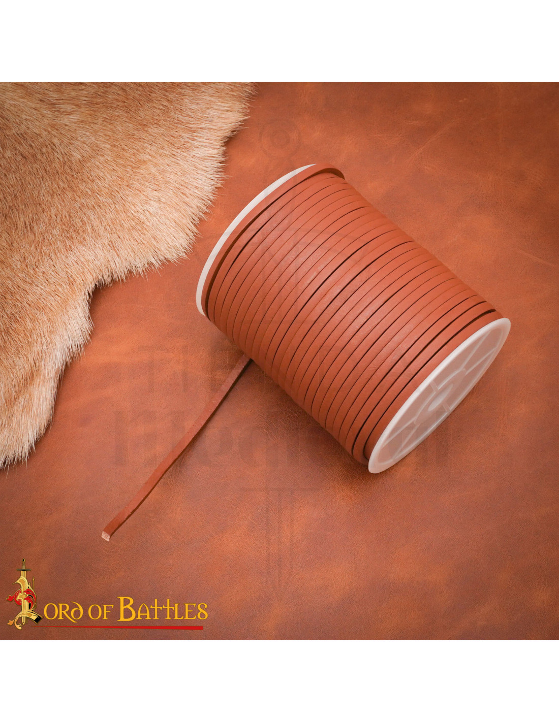En la imagen se aprecia el carrete blanco con la tira enrollada de forma compacta, su superficie lisa y el tono marrón claro que anticipa el acabado cálido que aportará a cada trabajo. Ideal para artesanos, entusiastas de recreación histórica y proyectos DIY que demandan aspecto genuino y durabilidad real.