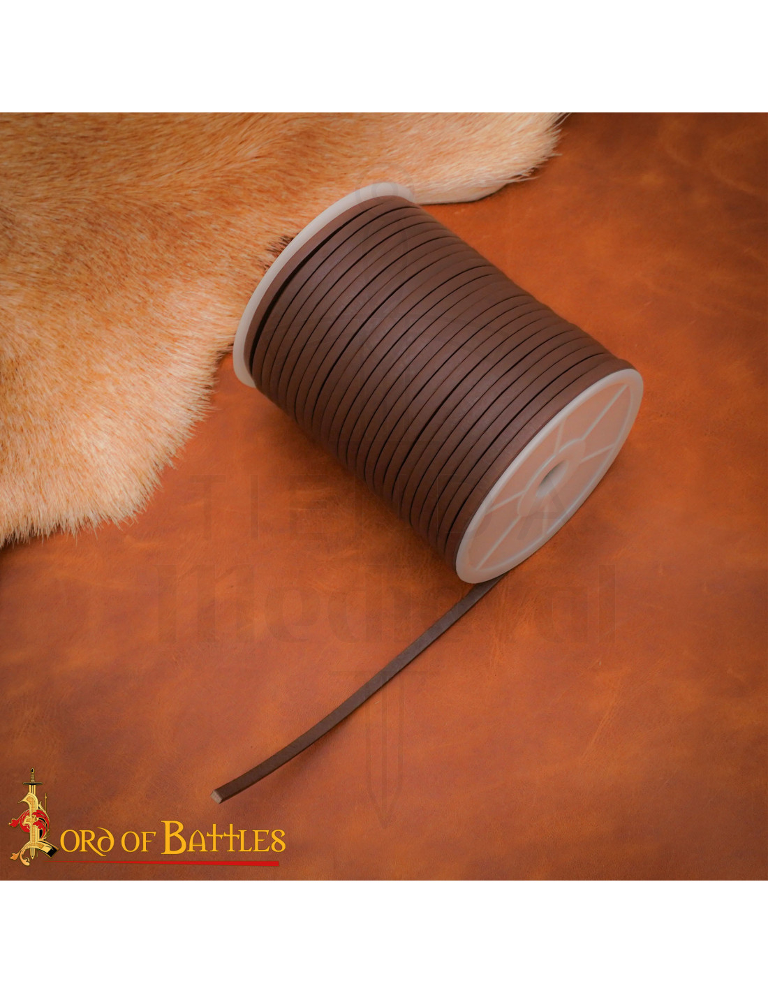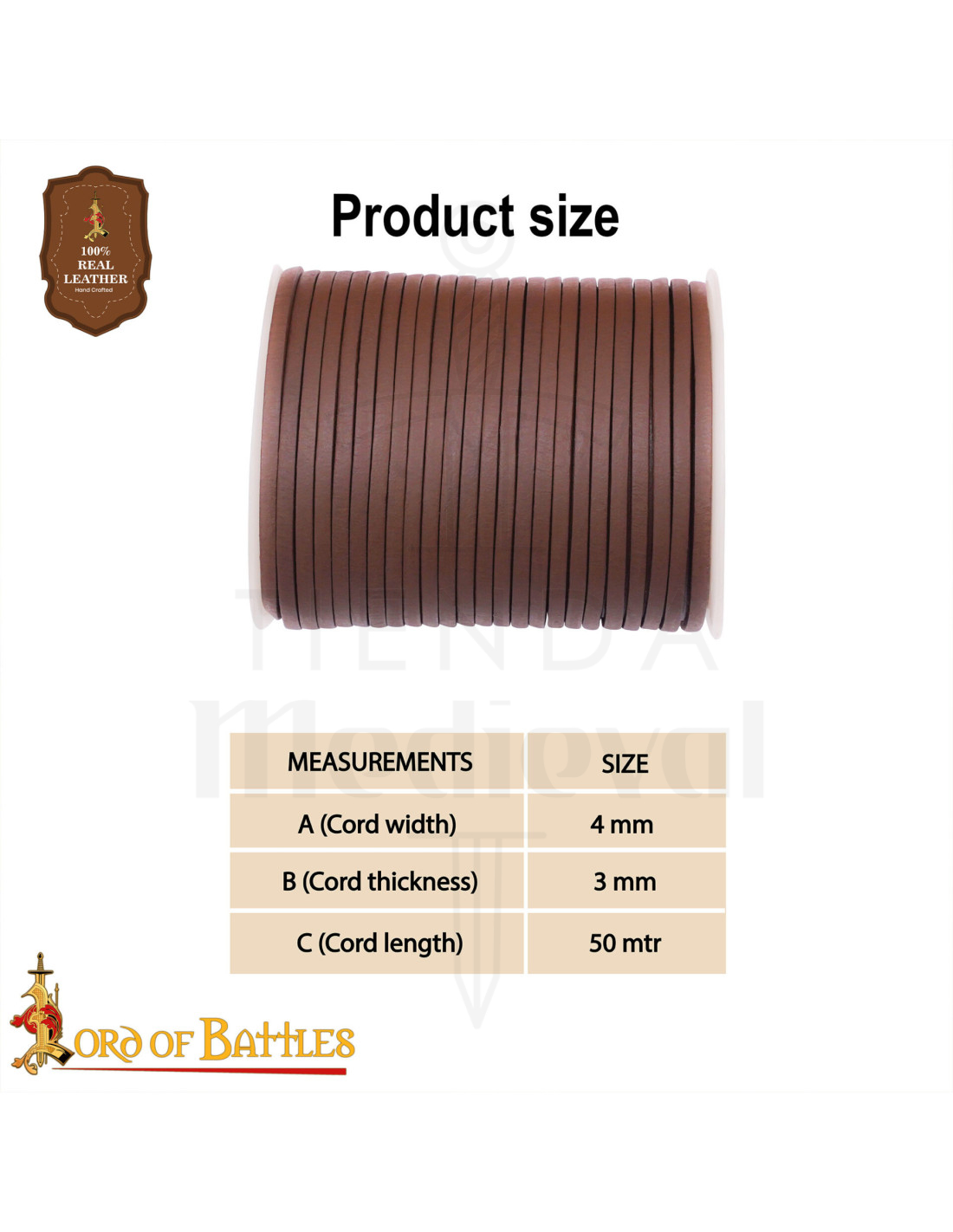 Ideal para quienes buscan autenticidad en recreaciones históricas o en proyectos LARP, esta cuerda aporta credibilidad visual y funcionalidad, conectando con la tradición del cuero en indumentaria y armamento de época.