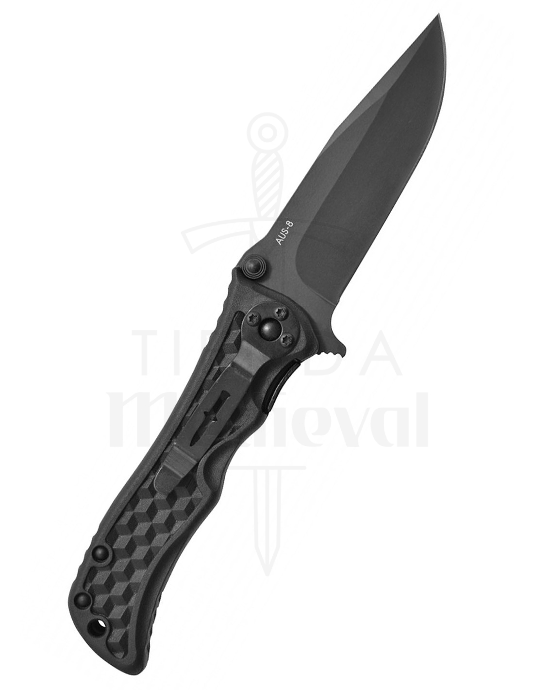 - Hoja de Alta Calidad: Con una hoja de aproximadamente 7.6 cm fabricada en acero AUS-8, esta navaja ofrece un corte preciso y duradero en cualquier situación. Su diseño de punta de gota garantiza versatilidad para una variedad de tareas al aire libre.