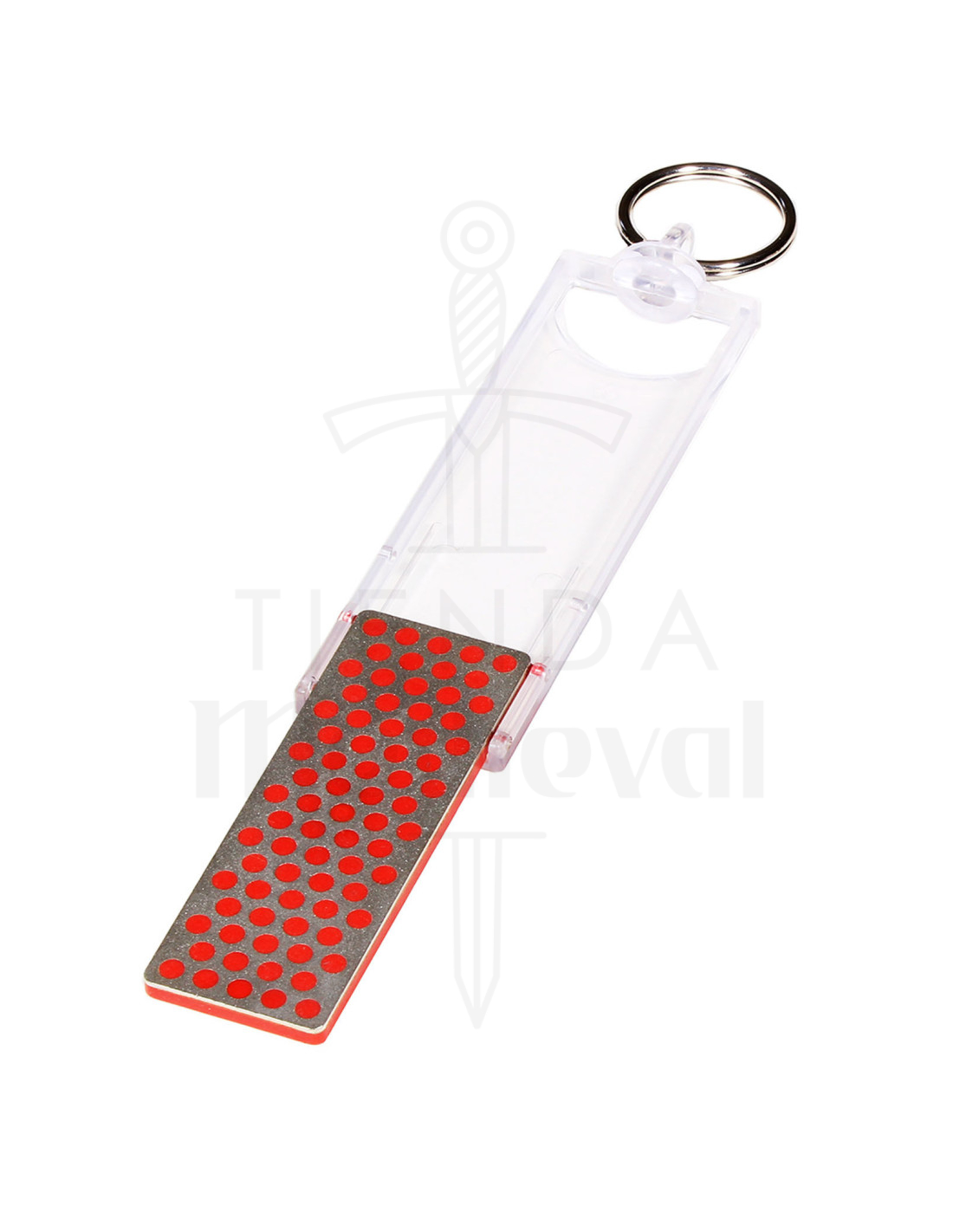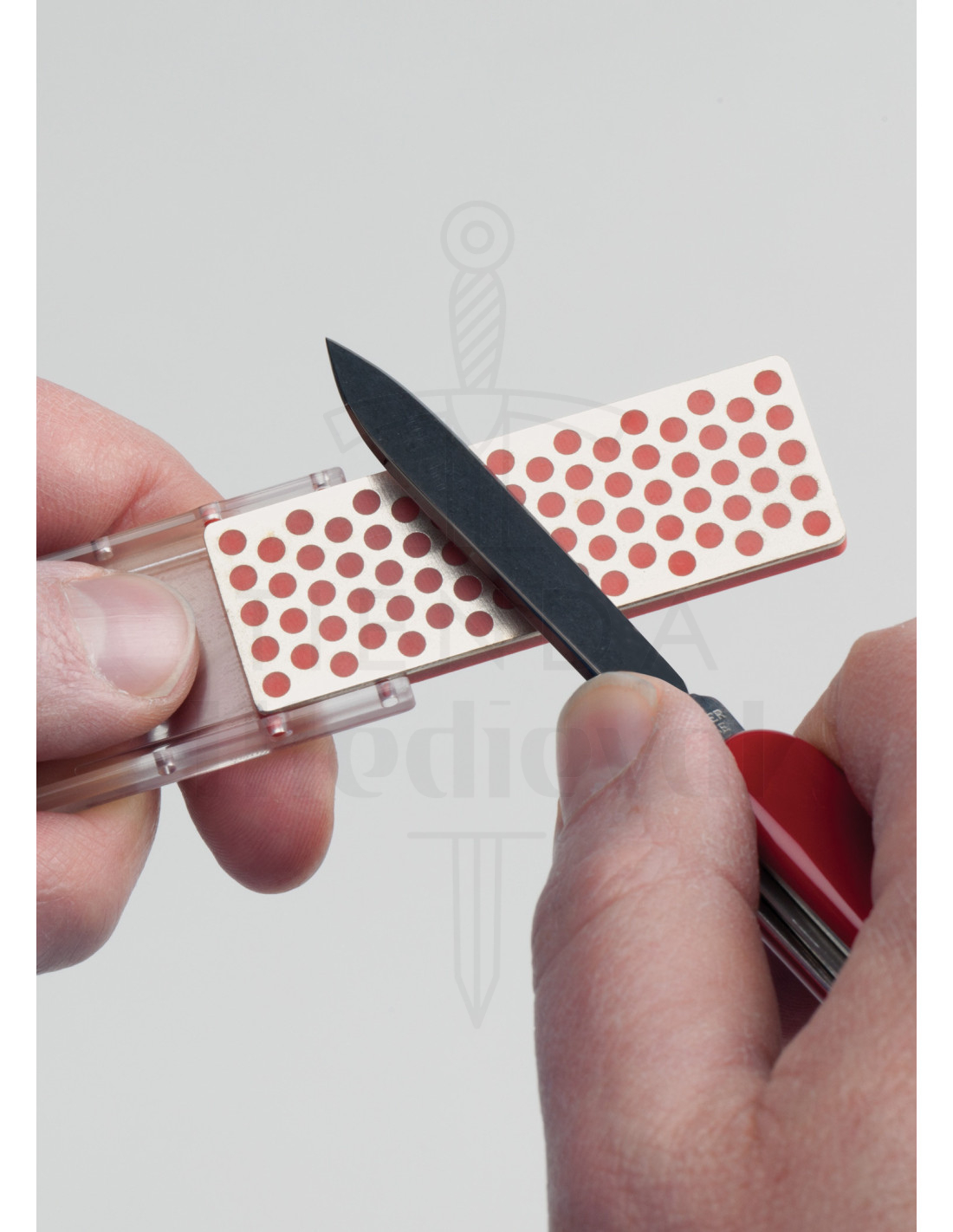 - Afilar en el Camino: Con un pequeño afilador plano con superficie monocristalina (600 mesh), esta navaja te permite mantener tu hoja afilada en cualquier momento y lugar, sin necesidad de aceite. Su diseño compacto y ligero te permite llevarlo fácilmente en un llavero, cremallera o mochila.