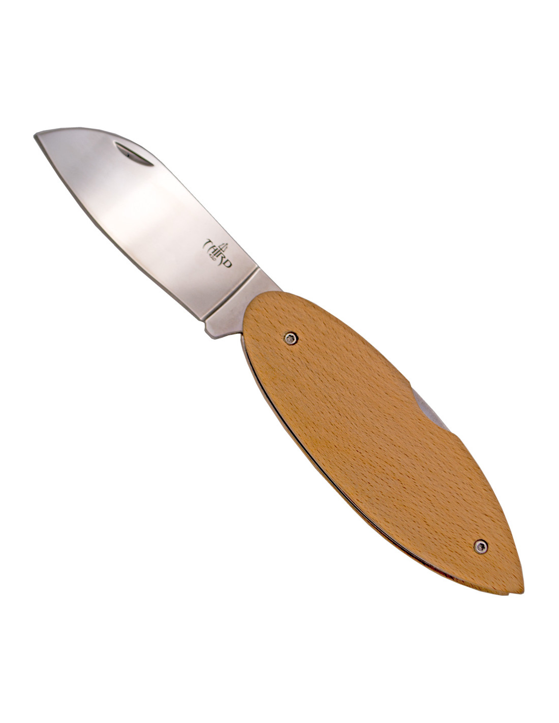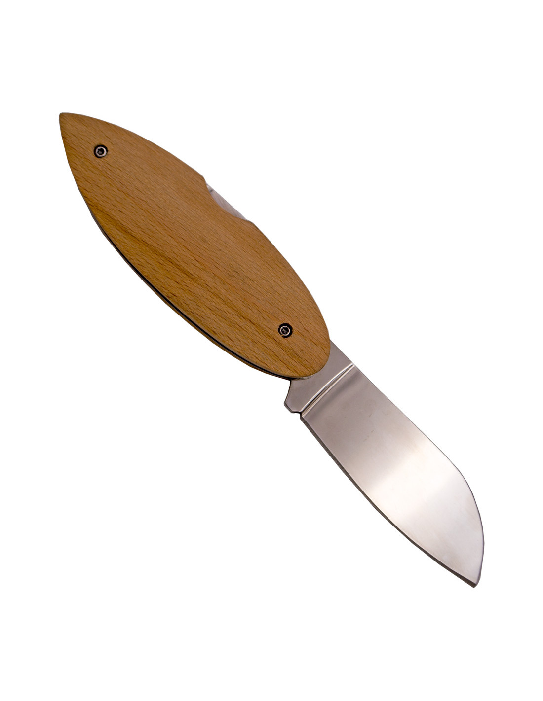 El mango de esta navaja está hecho de madera de haya, un material que aporta tanto resistencia como una estética natural y agradable al tacto. El diseño del mango, sin adornos adicionales, resalta la belleza simple y funcional de la madera, ofreciendo un agarre cómodo y seguro, ideal para un uso prolongado.