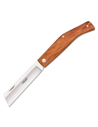Características clave de la Navaja Pallés Nr. 2 con mango de madera y hoja de acero carbono: