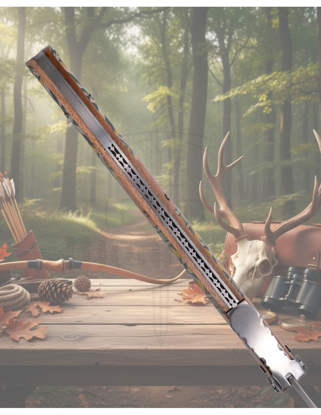 Para quienes buscan comprar Navaja carraca Third empuñadura taracea serie Mapple Wood, esta pieza aporta distinción sin renunciar a la practicidad. Es perfecta si valoras una navaja plegable con presencia, detalles ornamentales y acabados de alta precisión, diseñada con tecnología CNC que garantiza consistencia y calidad en cada ejemplar.
