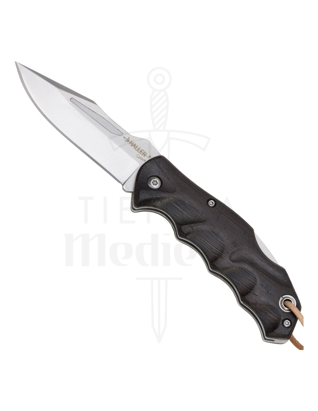 El mango, elaborado en madera de ébano, aporta una textura suave y resistente que no solo es agradable al tacto, sino que también asegura durabilidad a lo largo del tiempo. Su acabado oscuro y natural realza su belleza y ofrece un toque de distinción que la convierte en una pieza ideal para el uso diario o actividades al aire libre.