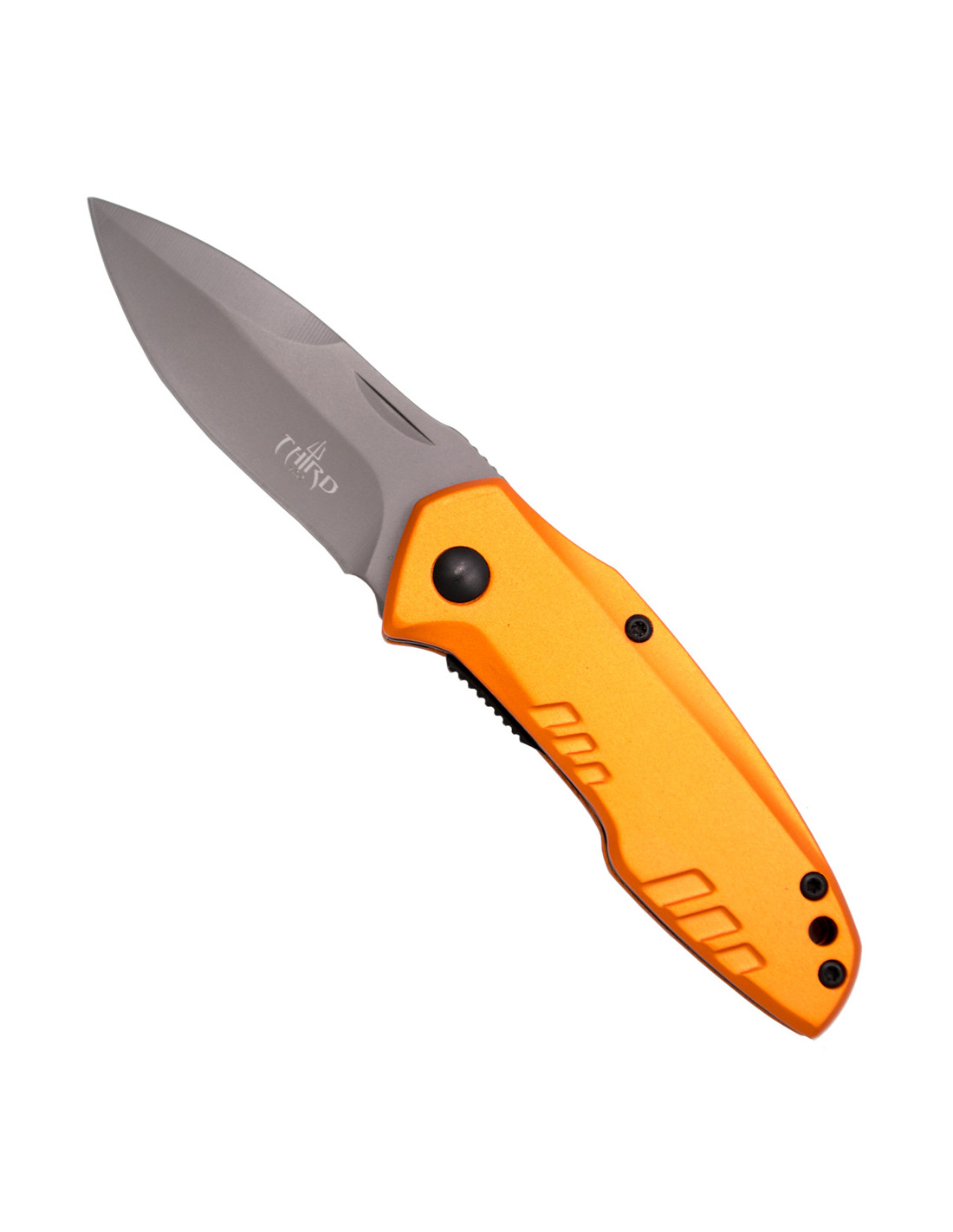 La navaja táctica Third con mango naranja es ideal para quienes buscan una herramienta eficaz con un toque de color.