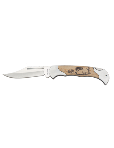 - Tipo de Mango en Madera Natural: La empuñadura de madera natural no solo es estéticamente atractiva, sino que también proporciona un agarre firme y cómodo, incluso en condiciones húmedas.