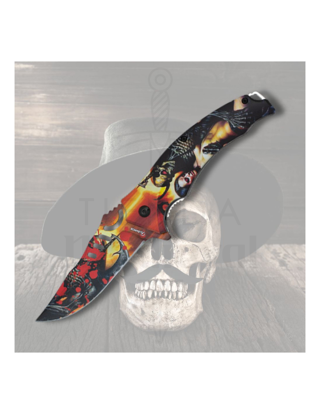 Perfecto tanto para coleccionistas que buscan una pieza con personalidad como para usuarios que requieren un cuchillo confiable y versátil. Este modelo no es solo una herramienta, es una declaración audaz que refleja fuerza y carácter.