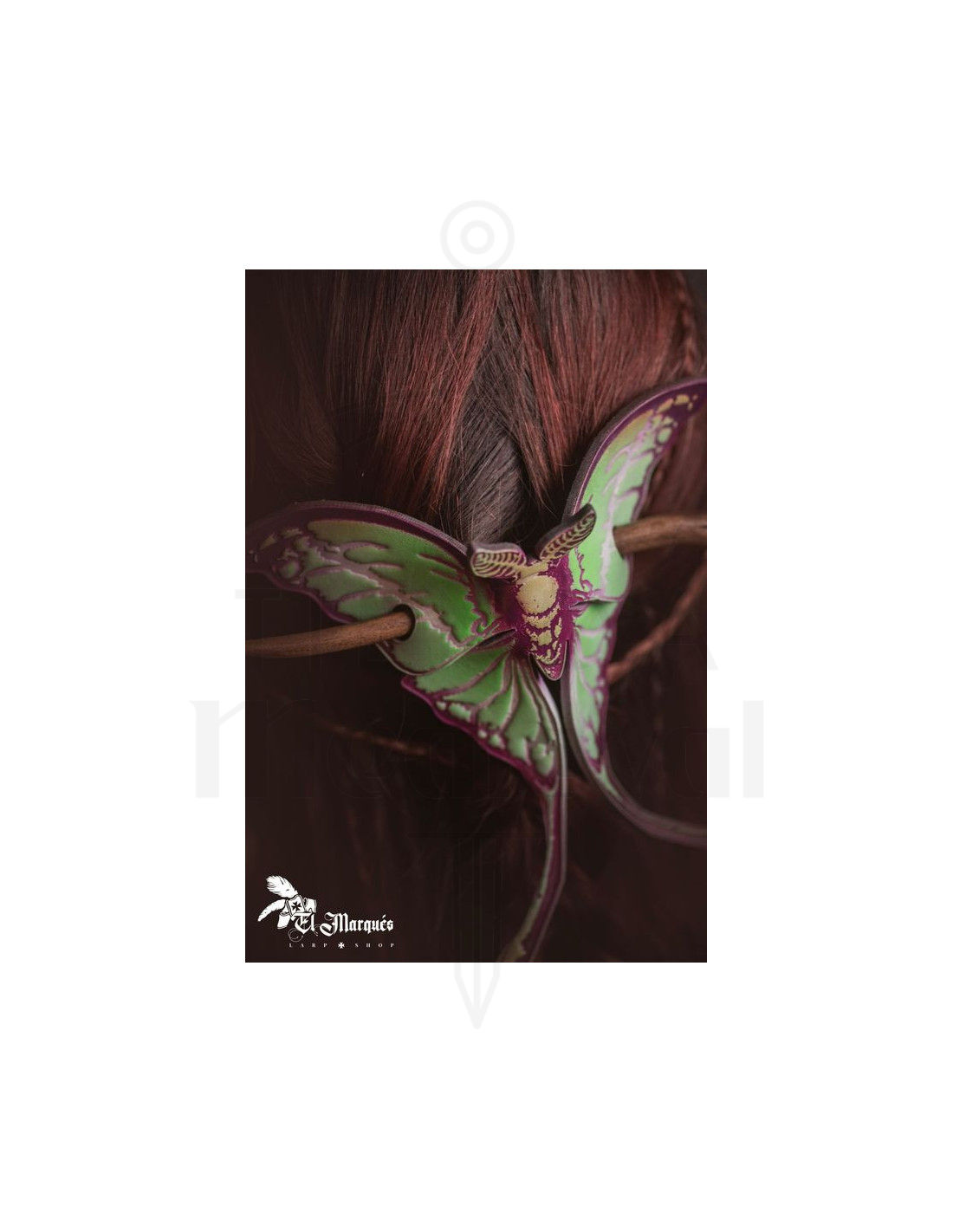 Pasador de pelo de polilla fantasía lunar verde, una pieza que suma carácter a tu peinado y convierte cada gesto en una pequeña escena de cuento.