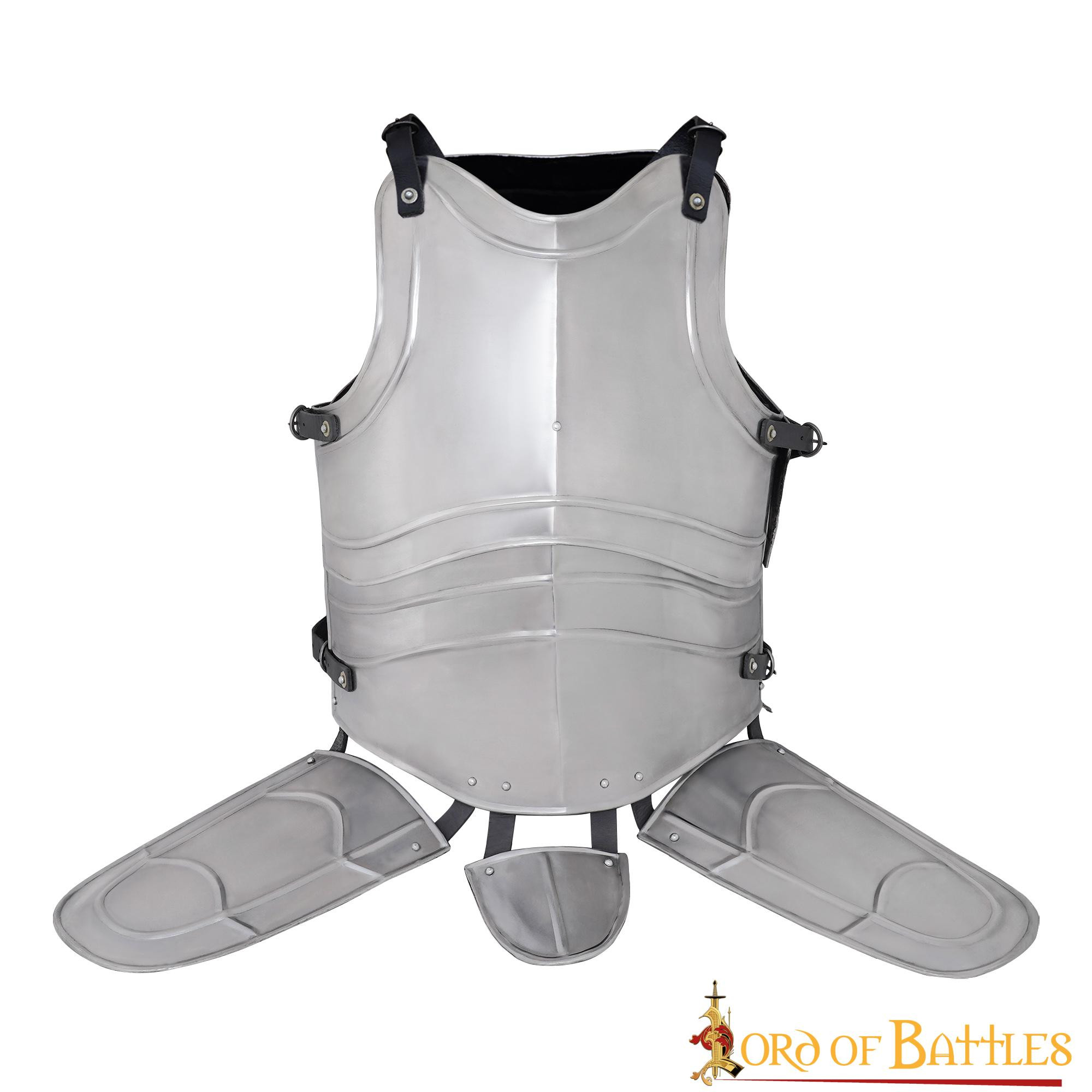 ¡La coraza de acero con escarcelas de Lord of Battle es tu boleto hacia la autenticidad medieval!