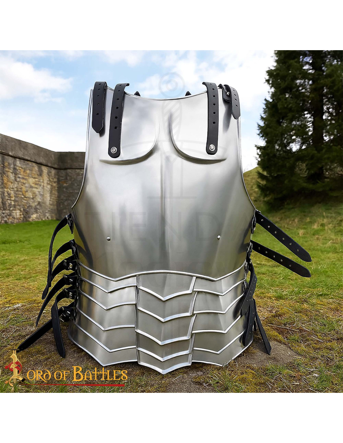 Coraza medieval en acero modelo Vanguard con correas de cuero