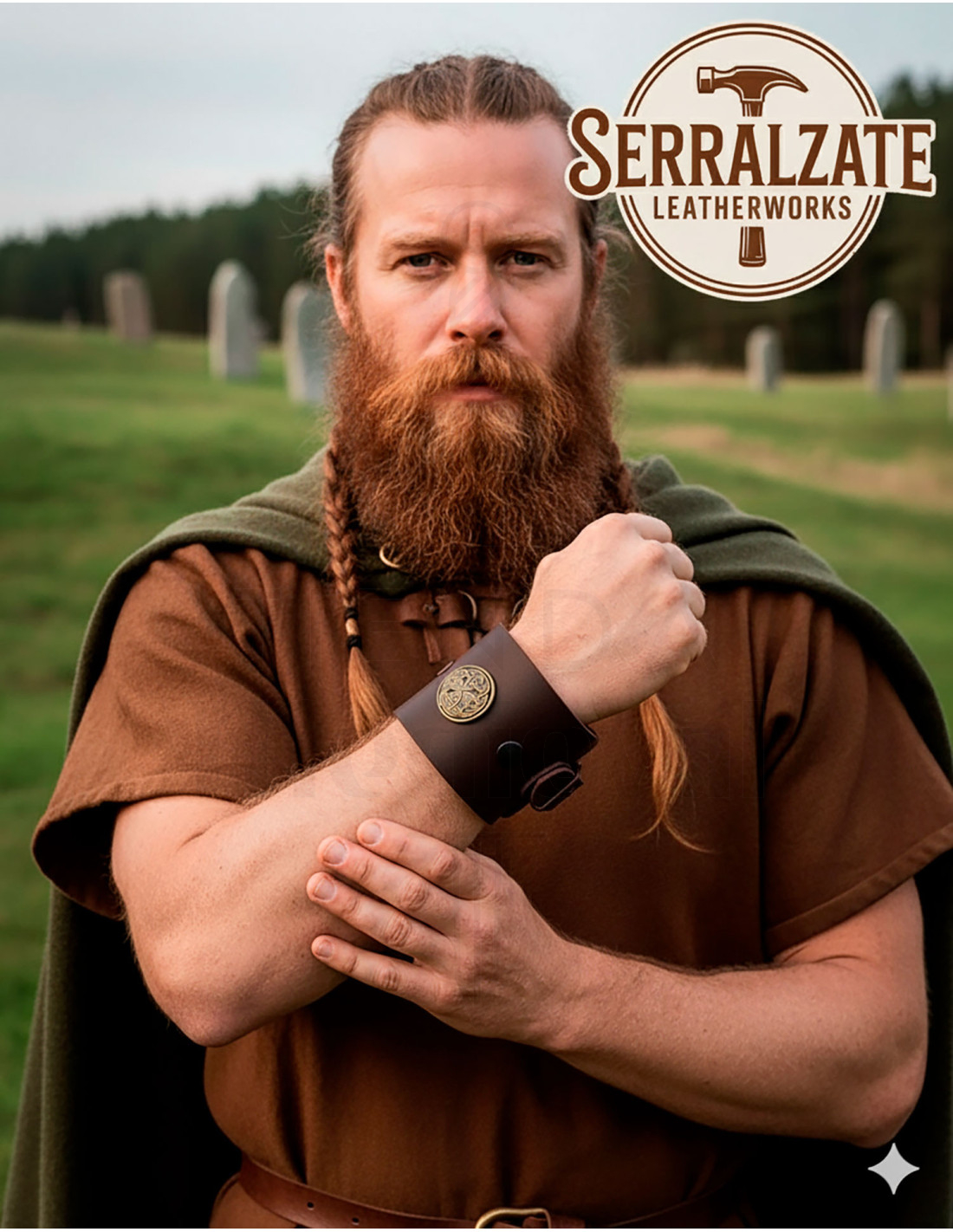 Descubre el estilo y la historia en tu muñeca con el brazalete de nudos celtas de Serralzate LeatherWorks. Esta pieza está elaborada a mano en España con cuero de alta calidad marrón, lo que asegura durabilidad y un acabado impecable. Su diseño se inspira en los elegantes y complejos nudos celtas, símbolos de continuidad y unión, que aportan un toque distintivo a este accesorio. Con detalles en tono bronce como una hebilla ajustable y botones decorativos, combina funcionalidad y estética. Incluye 1 unidad.