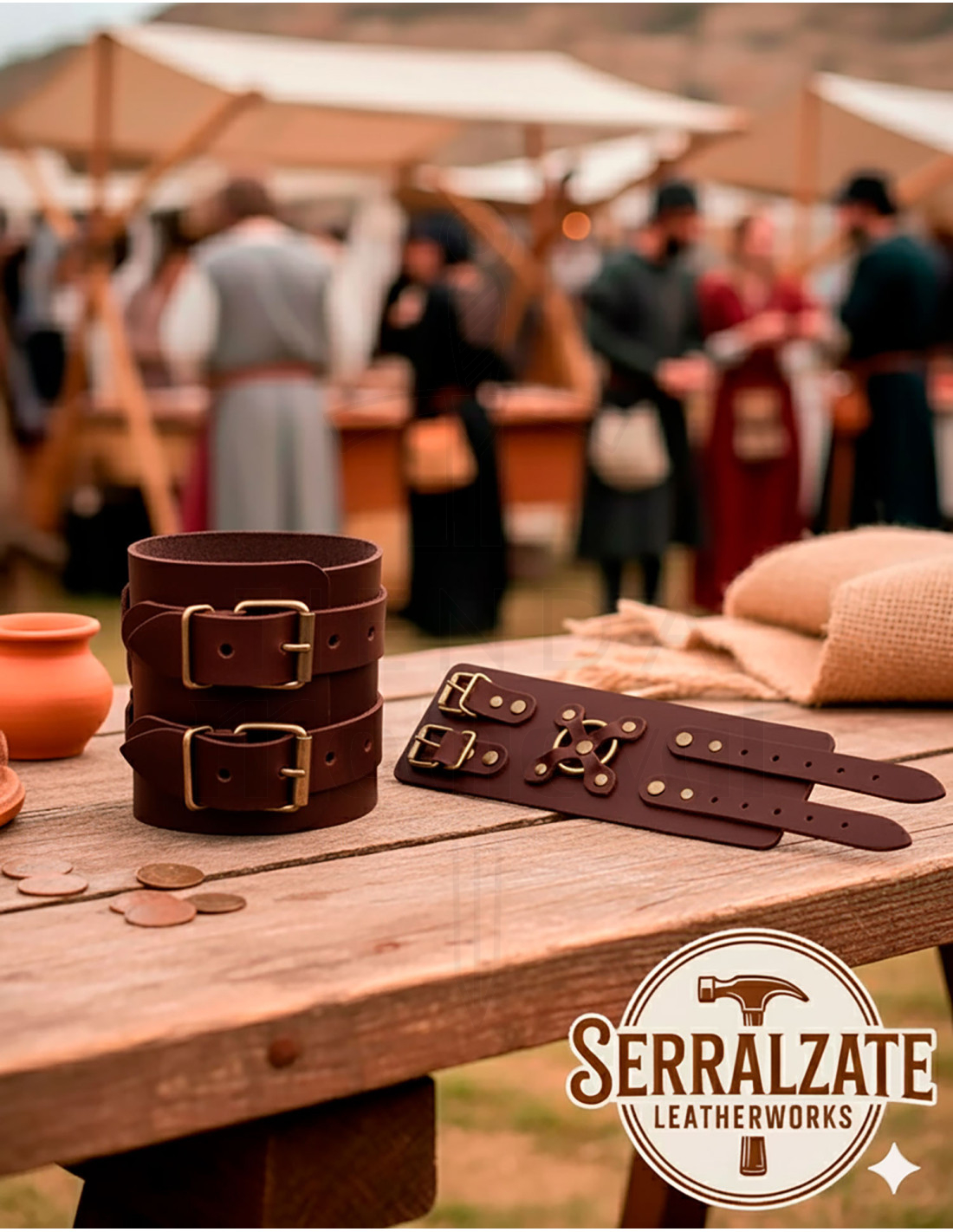 Descubre la Pulsera medieval Alejandro en marrón de Serralzate LeatherWorks, un accesorio que trasciende lo ordinario. Este elegante complemento está diseñado no solo como una joya, sino también como un elemento distintivo para tu armadura, ideal para quienes viven la aventura en cada momento.