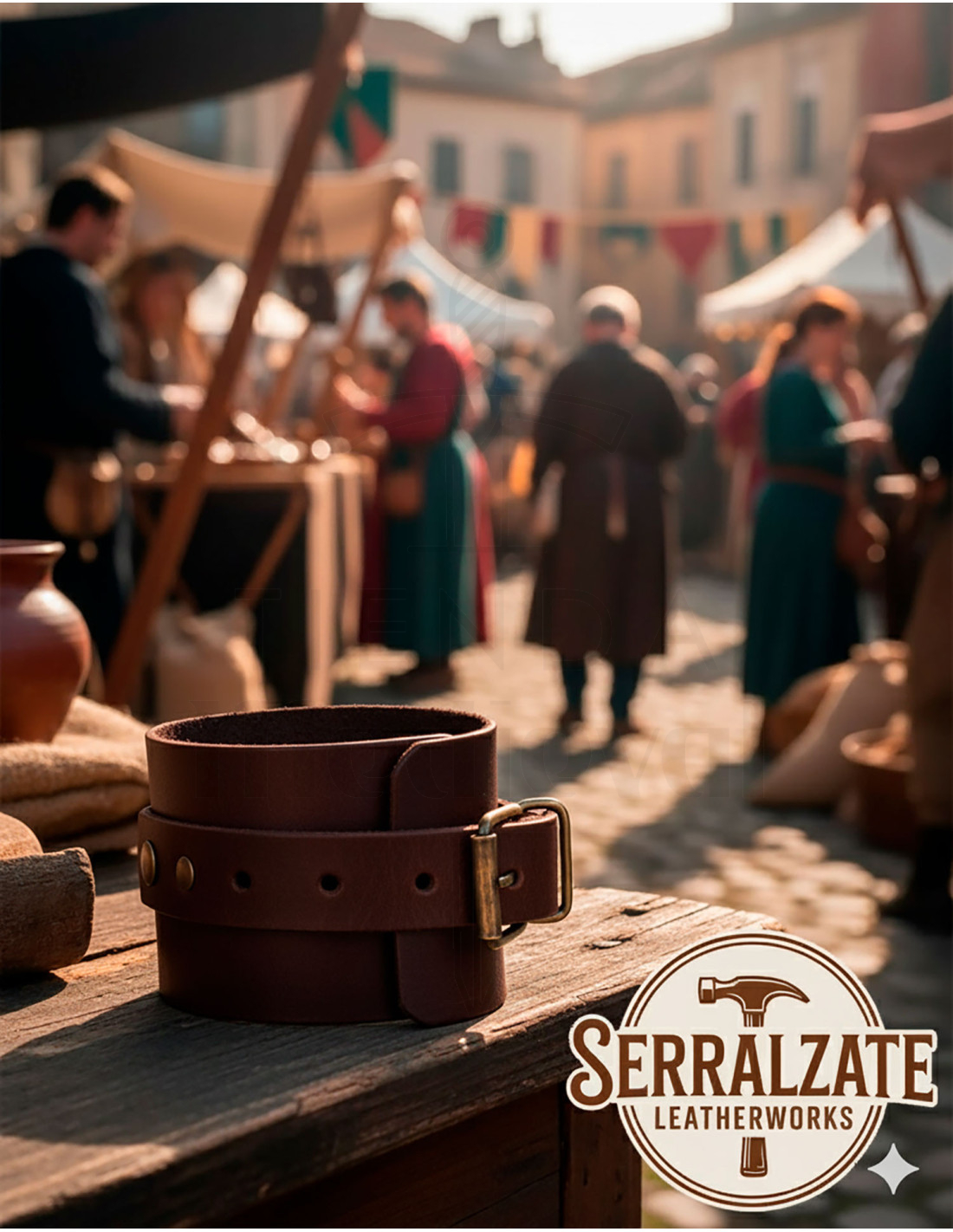Descubre el Brazalete Medieval El Camino en marrón de Serralzate LeatherWorks, un accesorio tan único como tú. Este brazalete de cuero en color marrón combina a la perfección sencillez, estilo y funcionalidad. Con su diseño inspirado en la estética medieval, añade un toque distintivo a cualquier conjunto, siendo ideal tanto para eventos de recreación histórica como para lucir en tu día a día.