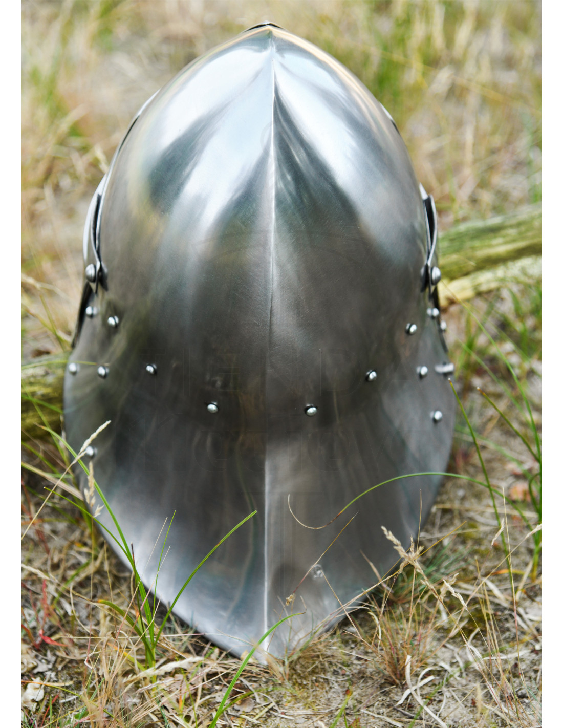 El Casco Coventry Sallet ha sido meticulosamente elaborado a mano por expertos artesanos del fabricante alemán Ulfberth. Su construcción en acero de 2 mm de grosor lo convierte en un casco resistente y duradero, preparado para soportar el Full Contact y la recreación más intensa. Puedes confiar en su excelencia y calidad inigualables.