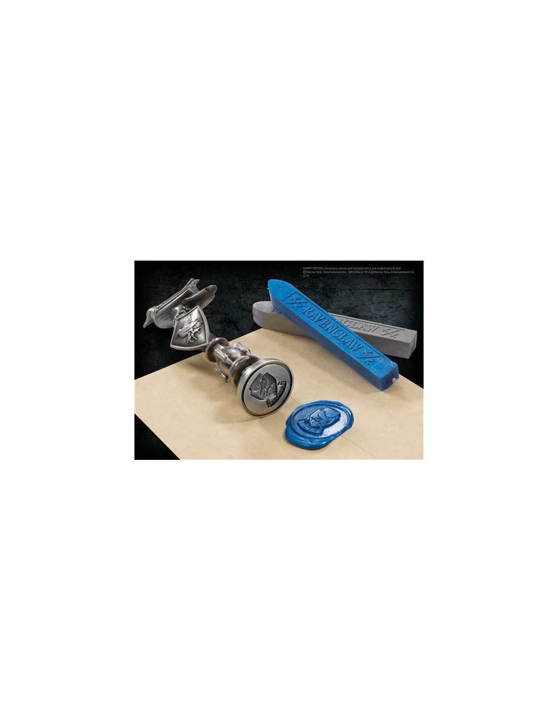 El sello está elaborado en metal de alta calidad, garantizando así su durabilidad y resistencia. Con un tamaño de aproximadamente 10 cm de alto, este sello destacará en cualquier papel en el que lo utilices, dejando claramente tu marca como miembro de la Casa de Ravenclaw.