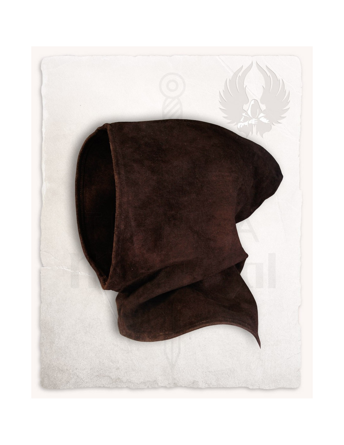 ¿Quieres añadir un toque auténtico y funcional a tu vestimenta medieval? La 'Bron' Hood en ante marrón es la elección perfecta para complementar tu atuendo con estilo y practicidad. Fabricada en suave ante, esta capucha corta ofrece un equilibrio ideal entre protección y comodidad, siendo perfecta para protegerte del viento y de lluvias leves sin ser demasiado abrigadora. Su diseño compacto la hace fácil de usar con cualquier prenda superior, brindando un aire de sofisticación y funcionalidad a tu look.