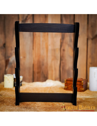 Una de las características más destacadas de nuestro soporte de madera es su clásica textura de madera profunda, que lo convierte en un accesorio de decoración perfecto tanto para ambientes contemporáneos como para aquellos que recrean la época medieval. Con este soporte, podrás mostrar tus espadas y hachas con orgullo, dándoles el protagonismo que merecen en tu espacio.