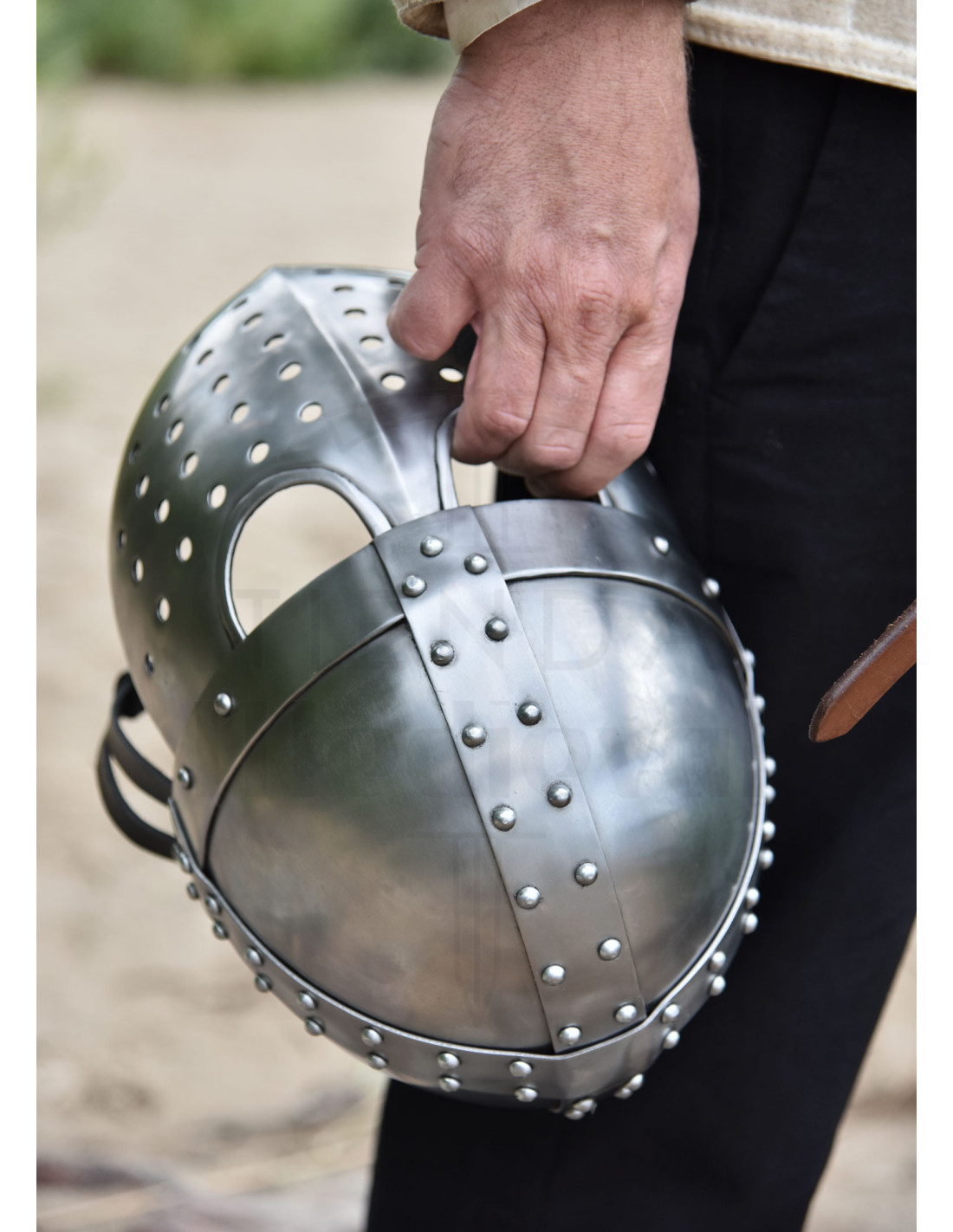 No esperes más y hazte con el casco Cruzados Spangenhelm con visera para lucirte como el auténtico guerrero medieval que llevas dentro. ¡No te arrepentirás!