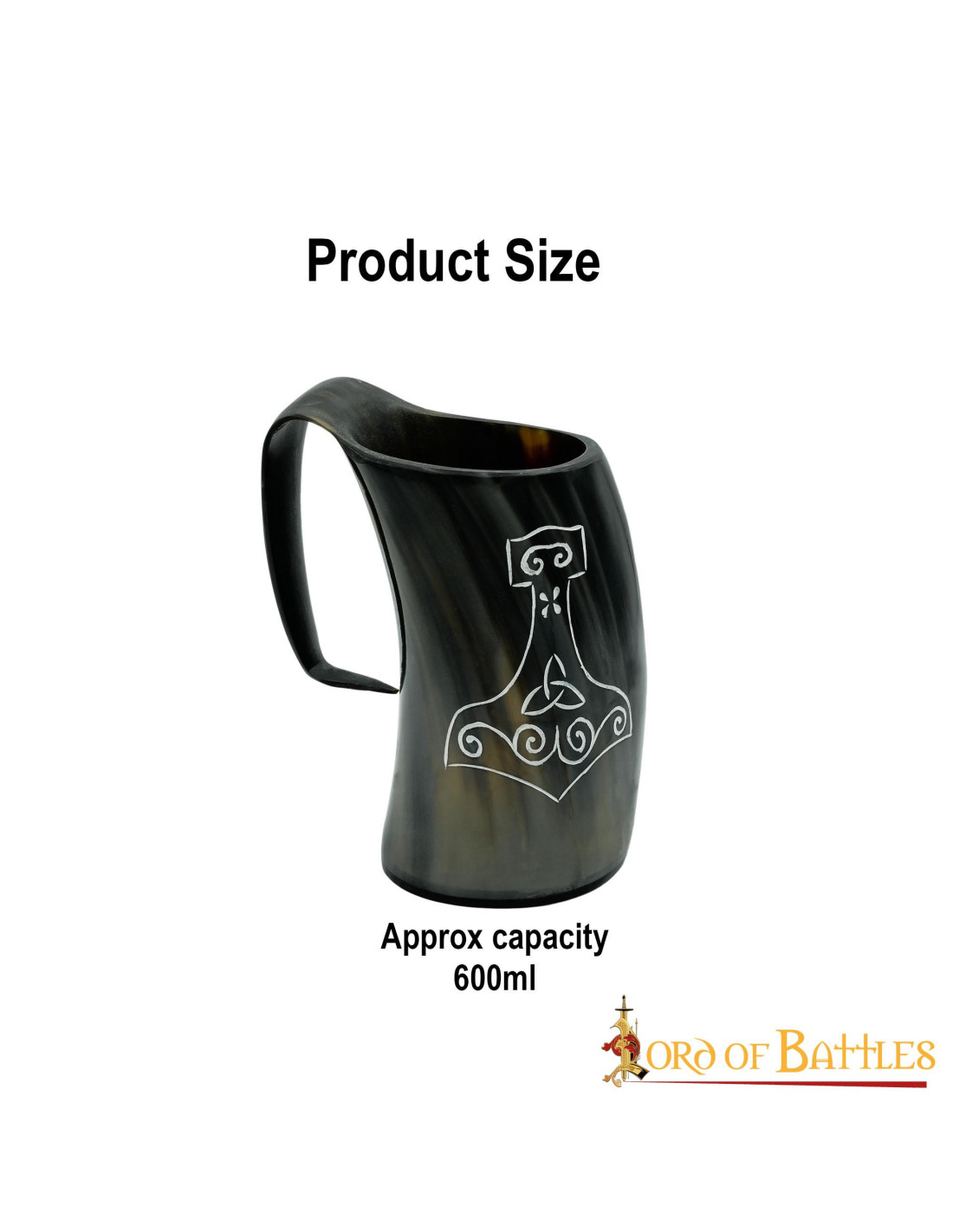 Ten en cuenta que, debido a su composición natural, pueden aparecer grietas con el tiempo. Sin embargo, esto no afecta a su funcionalidad ni a su encanto único. ¡Obtén tu jarra de cerveza Vikinga Mjolnir y vive la experiencia vikinga definitiva!