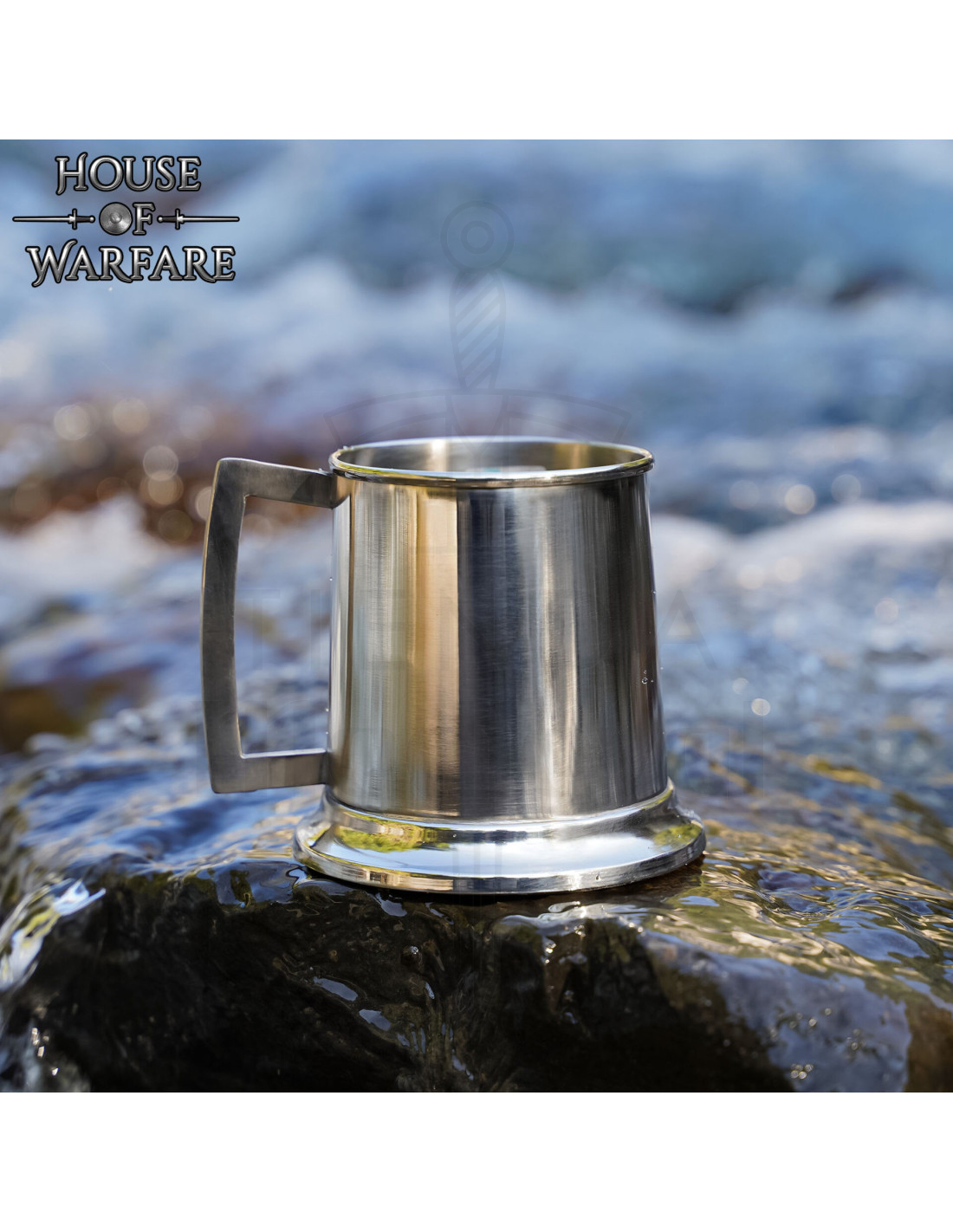 Diseñada pensando en el uso real, su forma robusta y el asa ergonómica facilitan el agarre incluso entre risas y movimiento, por lo que resulta ideal para ferias medievales, noches de taberna temáticas o encuentros LARP. El material resistente evita preocupaciones por el óxido, y su mantenimiento sencillo permite que vuelva a brillar rápidamente tras cada celebración, sin necesidad de cuidados complicados.
