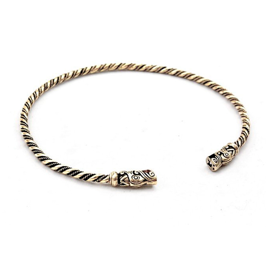 El bronce utilizado en la fabricación del Torque Vikingo Gotland cabezas de Dragón le otorga un brillo único y una apariencia auténtica. Este collar es perfecto para aquellos que buscan conectar con el espíritu y la historia de los antiguos vikingos.