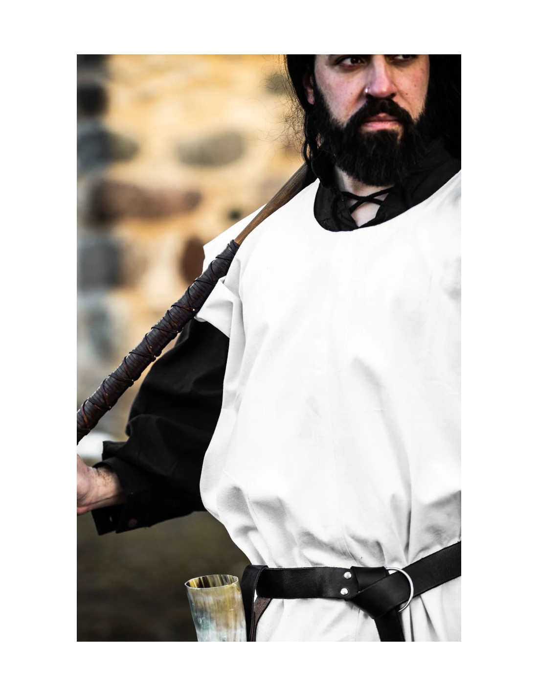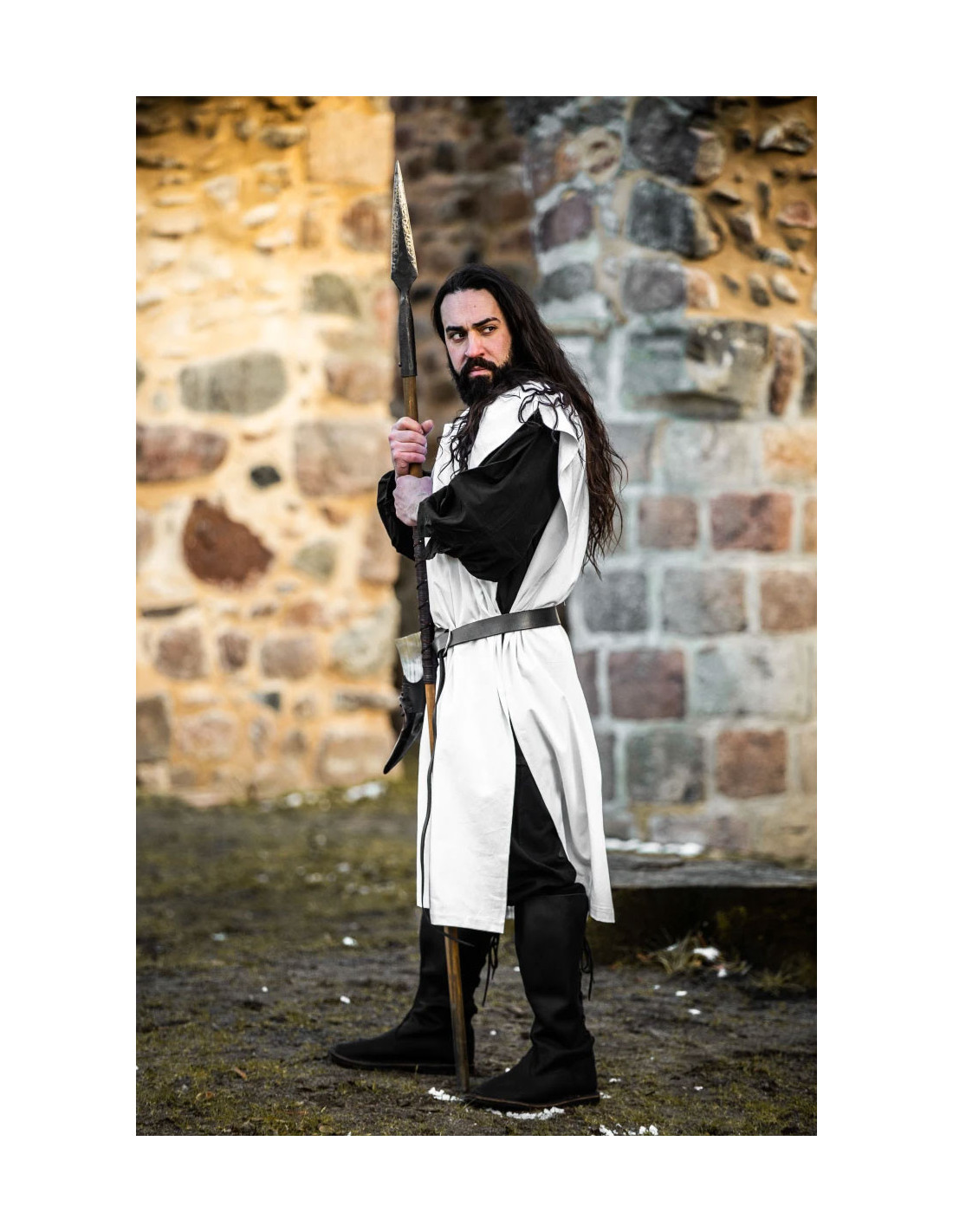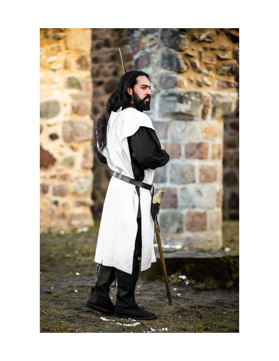 ¿Estás buscando una túnica medieval sencilla pero elegante La Túnica Medieval en Algodón Modelo Frojoerick en blanco es una elección perfecta. Confeccionada con 100% algodón, esta túnica es cómoda y duradera, lo que la hace ideal para cualquier evento de re-creación histórica.