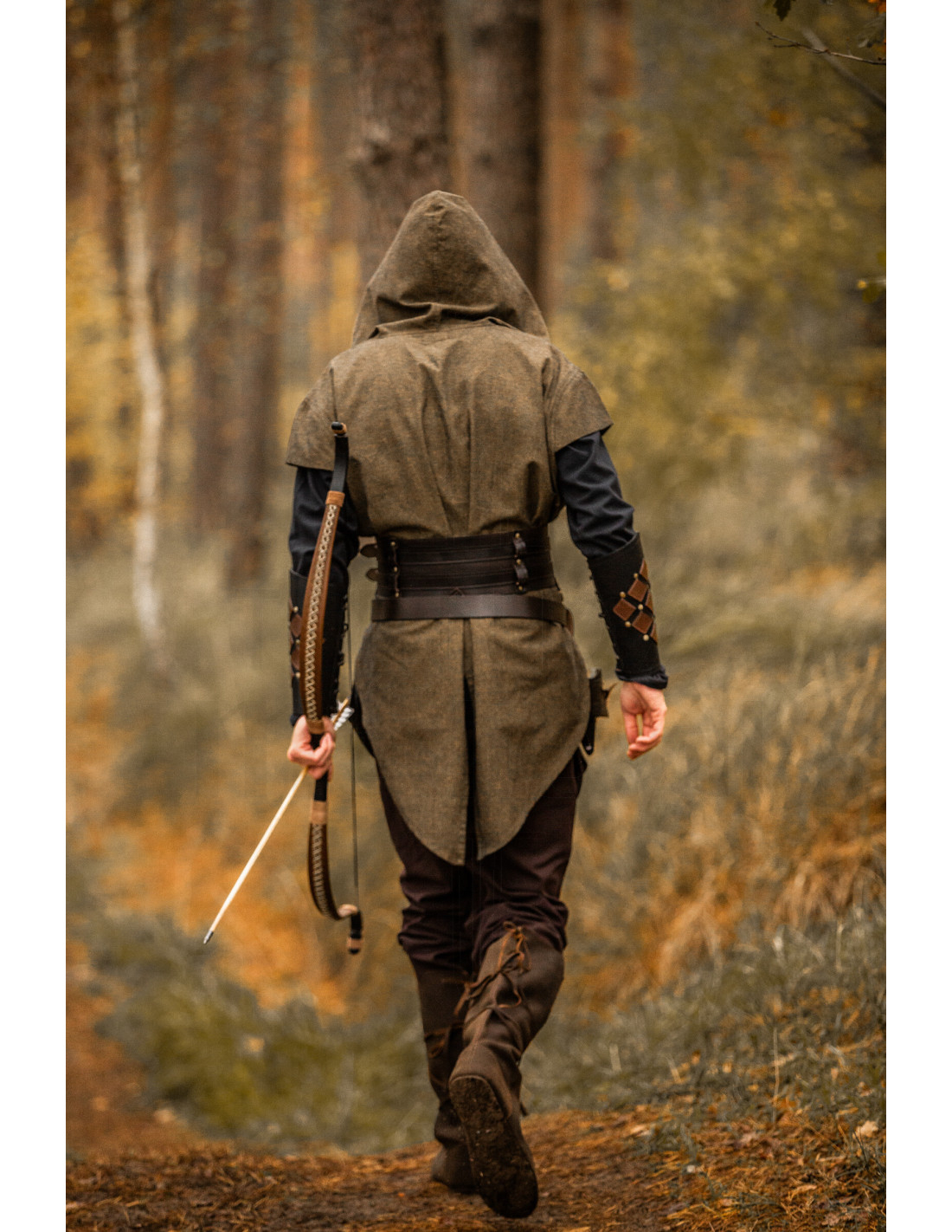 Inspirada en la época medieval, esta túnica rememora la valentía de los exploradores forestales, quienes necesitaban vestimentas resistentes pero cómodas para sus hazañas. El algodón utilizado se siente suave al tacto, invitándote a prolongar su uso en eventos temáticos, jornadas al aire libre o simplemente para expresar tu pasión por la fantasía de manera auténtica.