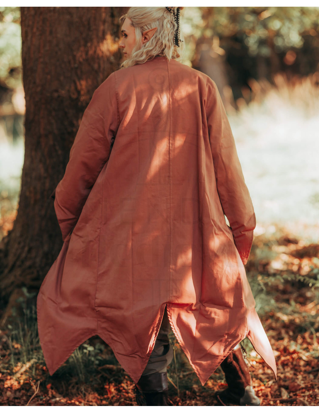 Descubre la elegancia y funcionalidad que transformarán tu personaje con esta túnica larga que parece sacada de un universo lleno de magia y misterio. Con un diseño que fluye con gracia y líneas depuradas, esta prenda proyecta una imagen de calma y nobleza, perfecta para interpretar a elfos, magos o sabios en tus aventuras o eventos temáticos. La tonalidad arena evoca la naturalidad y la conexión con la naturaleza, ideal para personajes que habitan bosques o mundos mágicos.