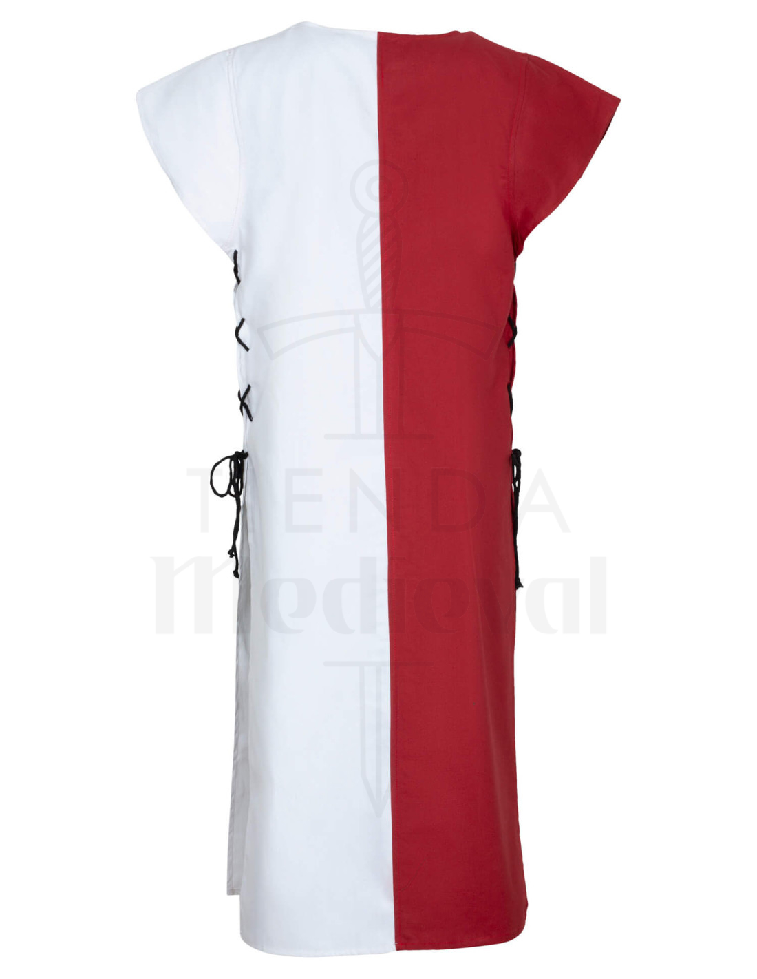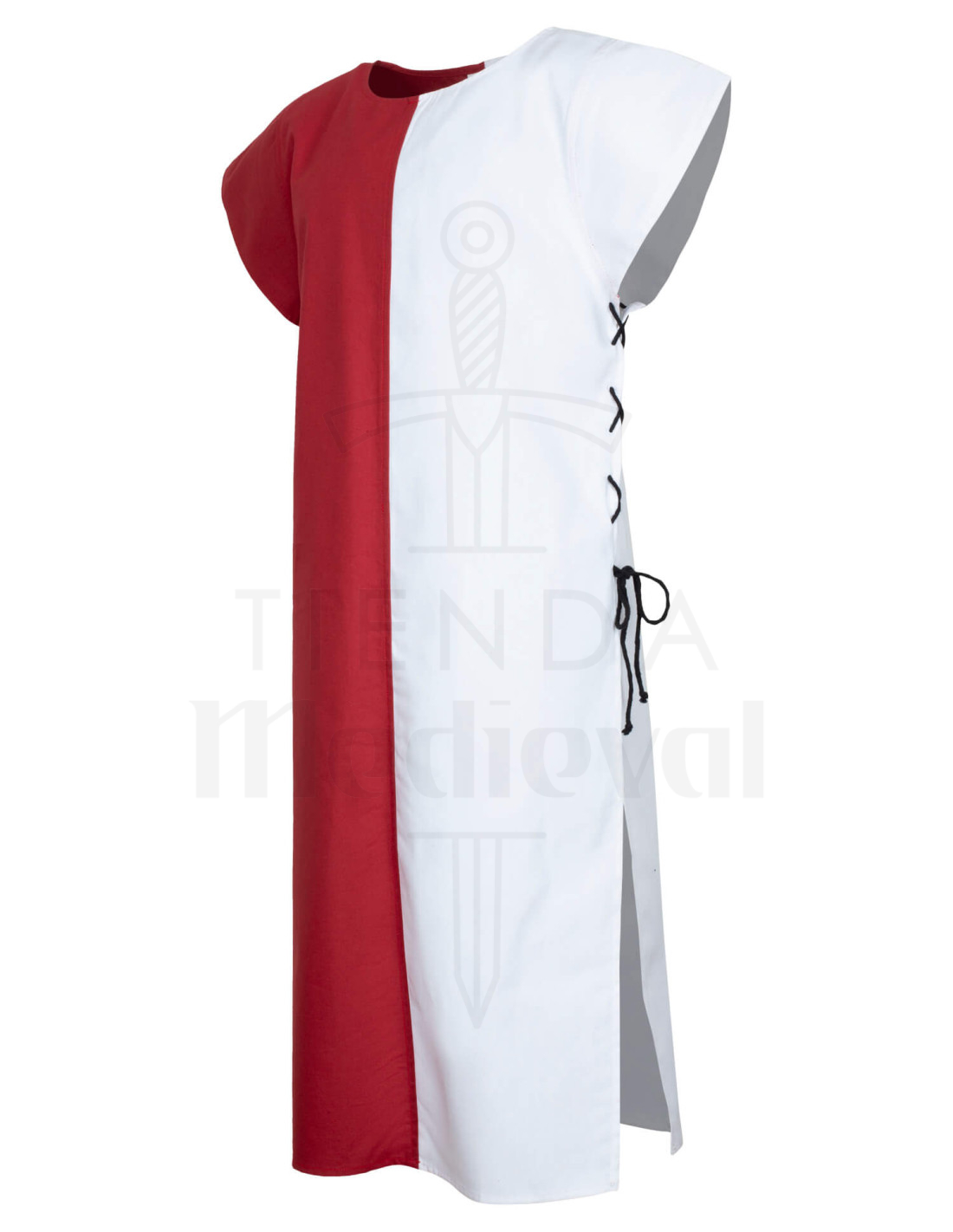 Gracias a sus aberturas ajustables y a la ligereza de la tela de algodón, este vestido resulta muy cómodo y práctico, ideal para quienes buscan combinar estética y funcionalidad. La imagen muestra un estilo con un diseño sencillo, que puede complementarse con decoraciones o heráldicas si se desea un toque más elaborado. Un toque de historia y resistencia, listo para acompañarte en tus aventuras más emocionantes o en momentos de recreación histórica, reflejando la tradición y pasión por la época medieval.