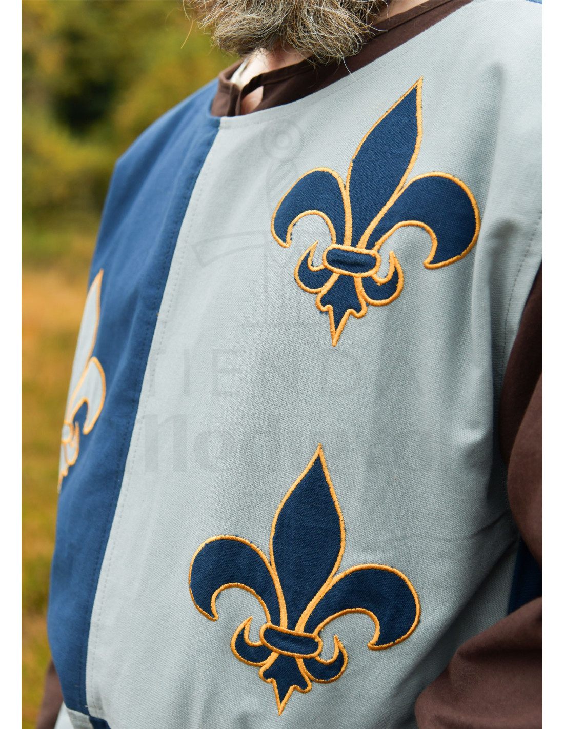 Tabardo medieval caballero diseño Flor de Lis, azul