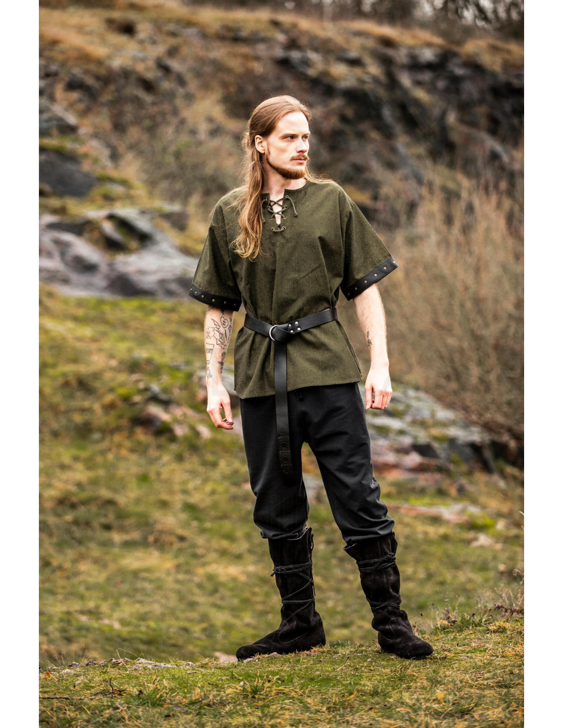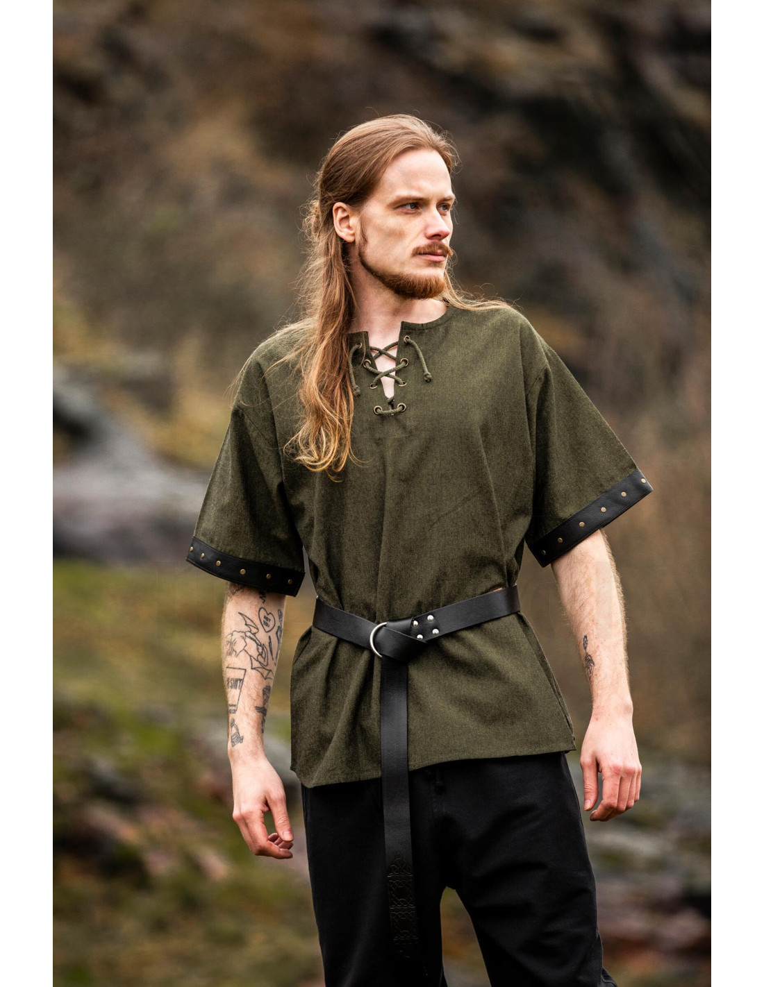 Para quienes ya saben lo que quieren, comprar Camisa hombre medieval Hagen con detalles de cuero genuino es elegir una prenda con presencia, confort y carácter que cuenta historias en cada costura.