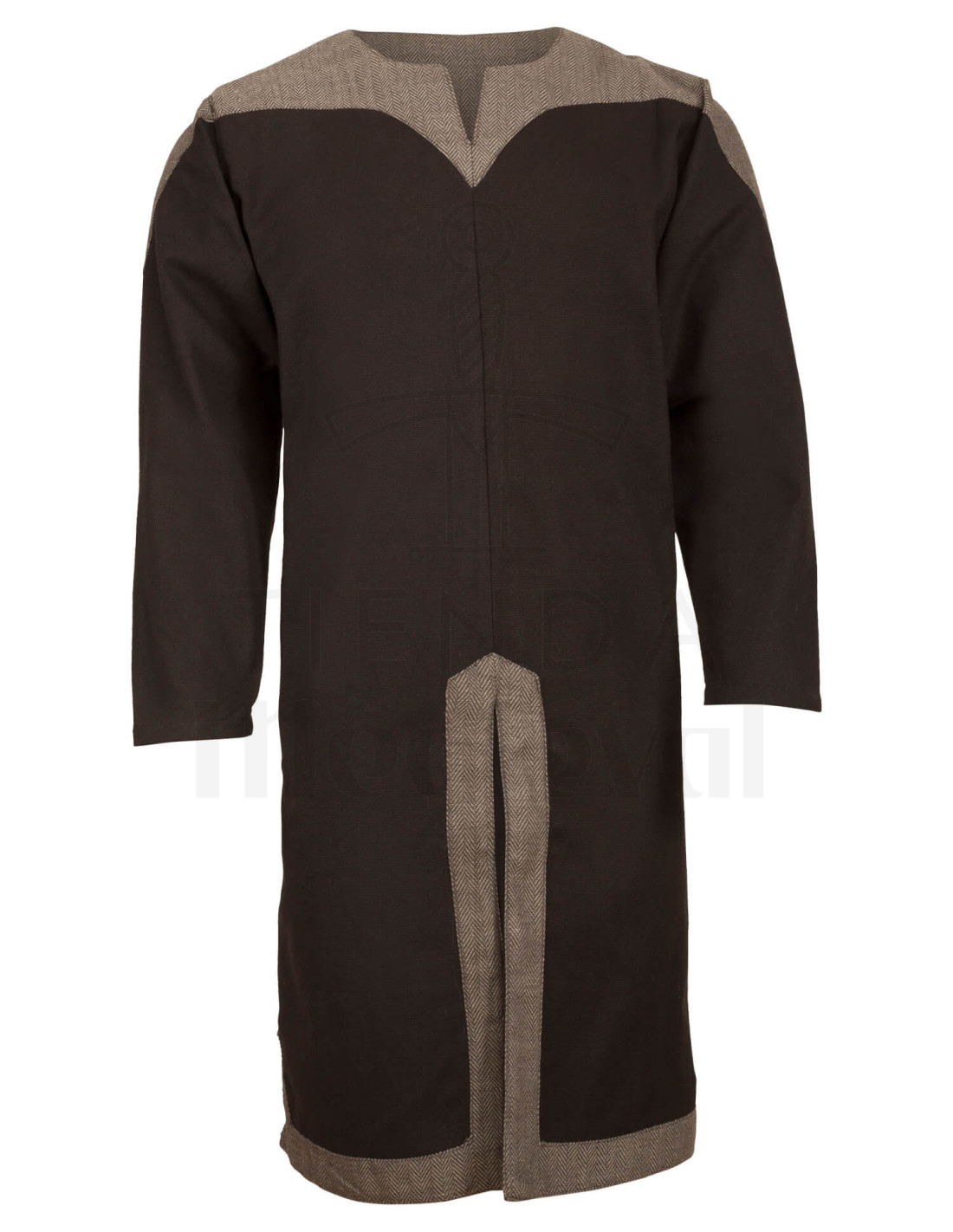 La túnica vikinga para hombre modelo 'Norgaard' en color marrón es una prenda que combina un algodón resistente en tejido de lona con detalles elegantes, perfecta para quienes buscan un atuendo auténtico y distintivo. Confeccionada en 100% algodón, esta túnica no solo ofrece comodidad, sino también durabilidad, ideal para largas jornadas de recreación o eventos históricos.