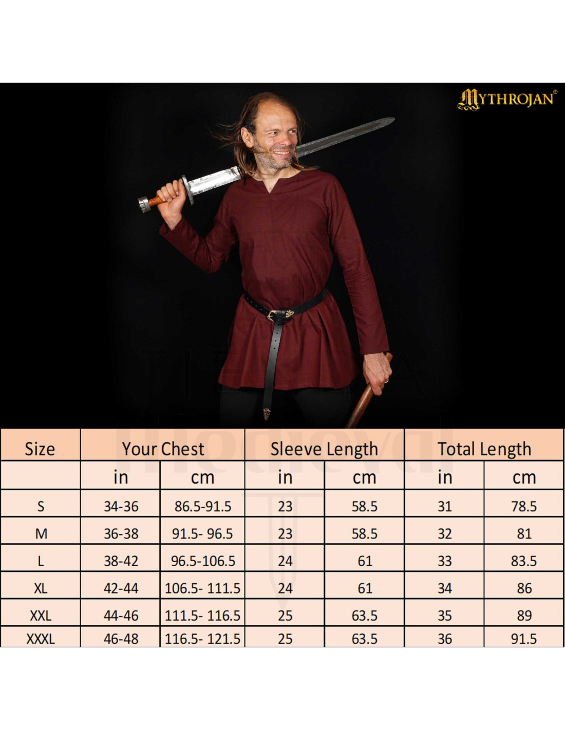 Su diseño sencillo y clásico, con un escote en V y mangas largas, te permite vestirla sola o debajo de una túnica más gruesa, adaptándose a tus necesidades y estilo. La cinturilla ajustable con hebilla dorada o bronceada aporta ese toque auténtico y práctico, ayudándote a realzar tu figura y completar tu look medieval. Además, su corte no solo es cómodo sino que también se ajusta perfectamente a peques y adultos, haciendo que cada miembro de tu grupo se vea espectacular.
