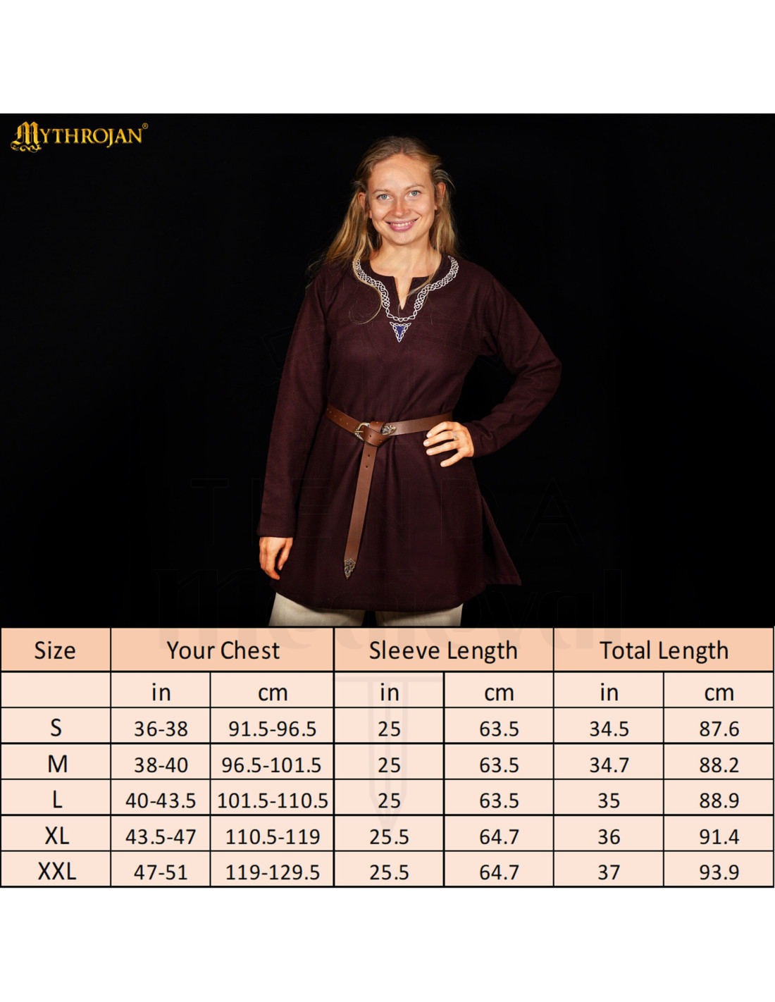 Disponible en varias tonalidades y en una gama completa de tallas desde S hasta XXL, esta túnica es ideal para celebrar la historia en campañas, exhibiciones educativas o simplemente para expresar tu pasión por las raíces nórdicas. Fácil de cuidar, solo requiere un lavado suave en frío y secado natural, manteniendo su belleza temporada tras temporada.