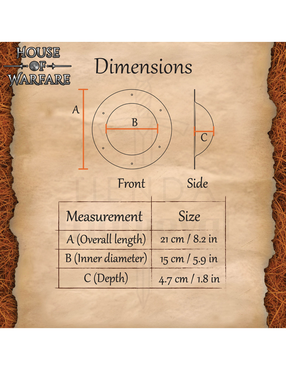 Ideal para quienes buscan completar un escudo de época con fidelidad, este umbo es perfecto para trabajos de reparación auténtica, proyectos DIY de escudos vikingos y medievales y piezas de exposición. Para quienes desean asegurar su compra, existe la opción de comprar Umbo redondo en acero forjado a mano para escudos medievales directamente como elemento clave del montaje.