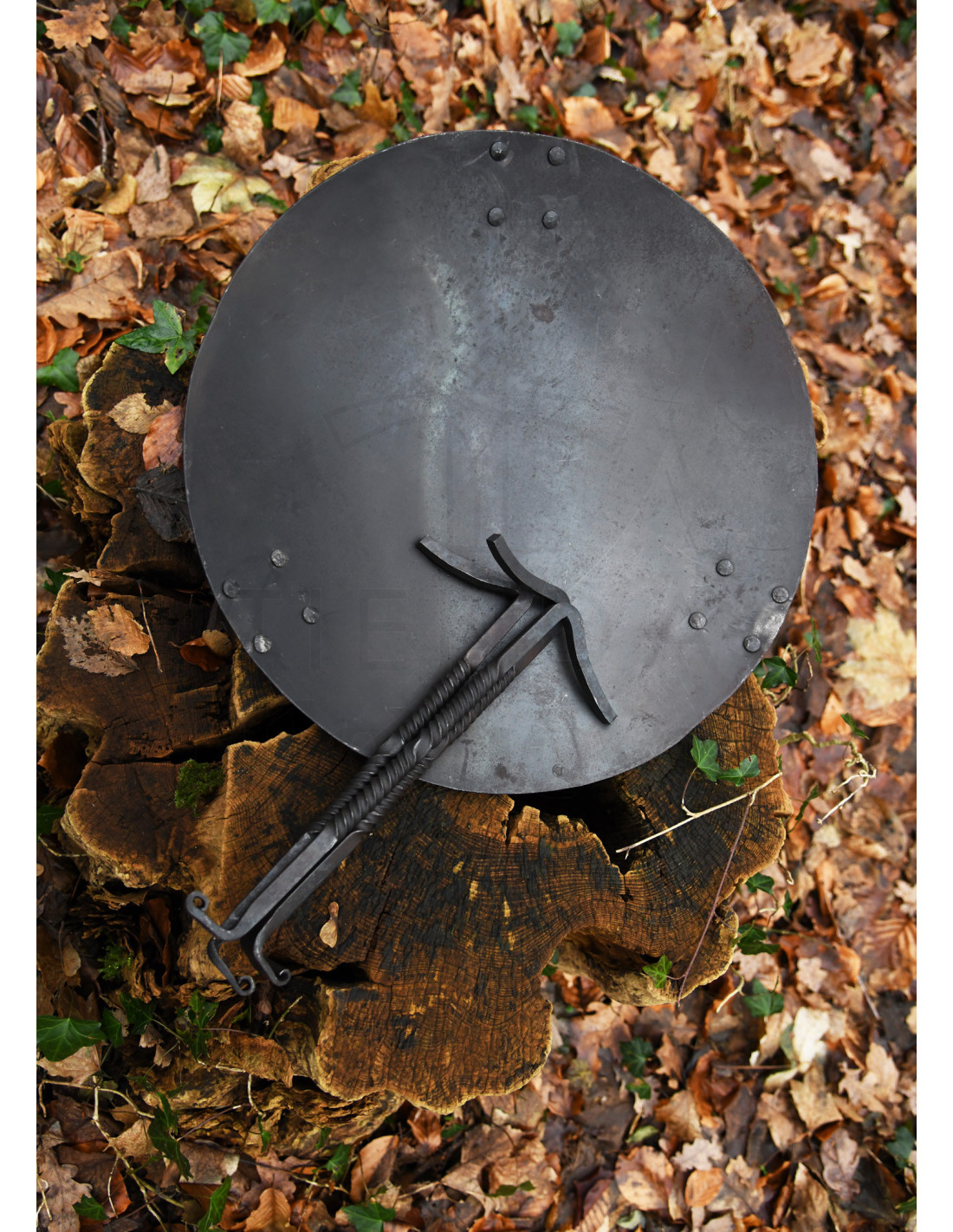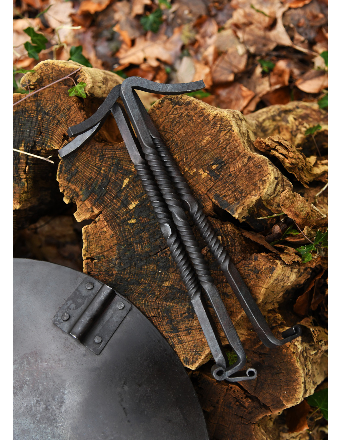 Fabricado a mano con hierro forjado, su diseño robusto y funcional se combina con una apariencia sencilla pero impactante, perfecta tanto para recreaciones históricas como para momentos íntimos en tu propio jardín. Las patas desmontables no solo proporcionan estabilidad segura, sino que también facilitan el transporte y almacenamiento, convirtiendo este brasero en un aliado versátil para cualquier aventura o evento.