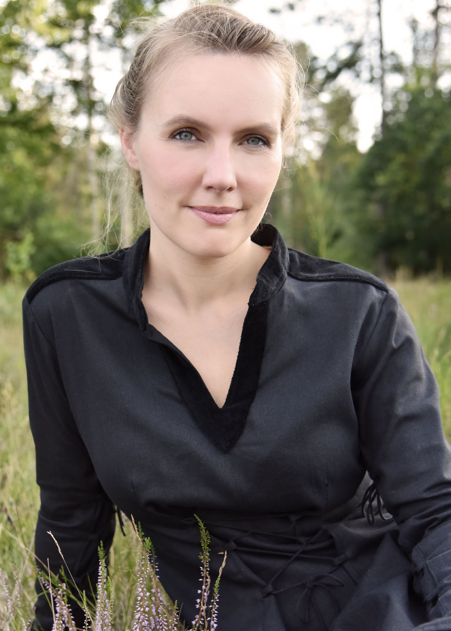Vestido medieval Ingrid con cordones en la espalda, color natural