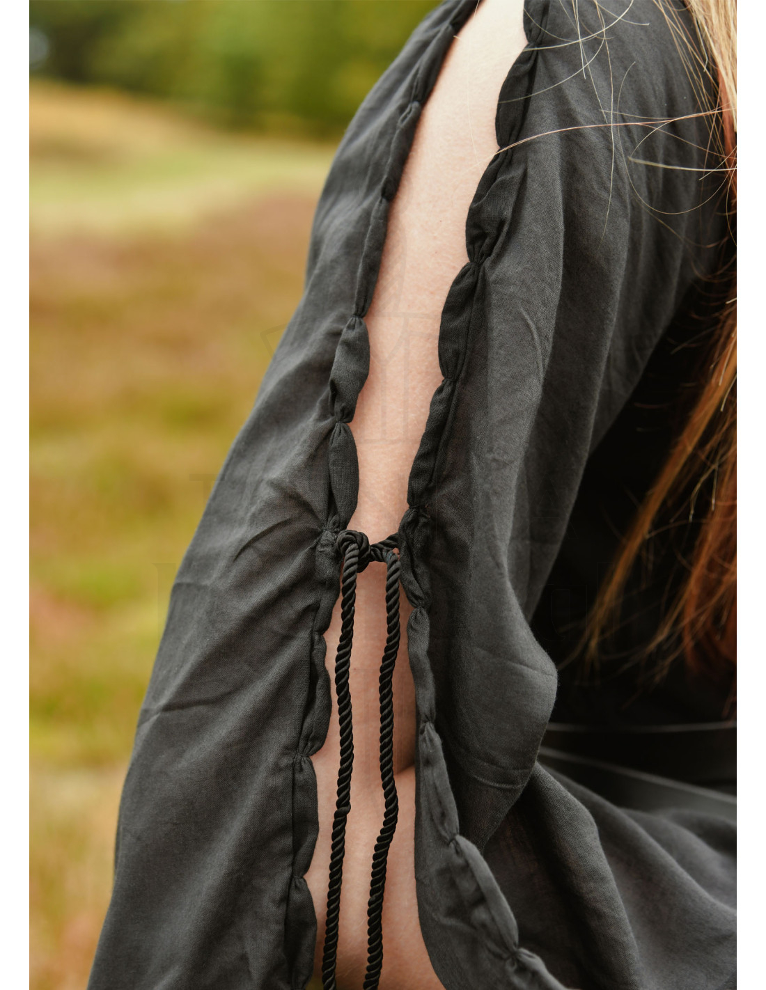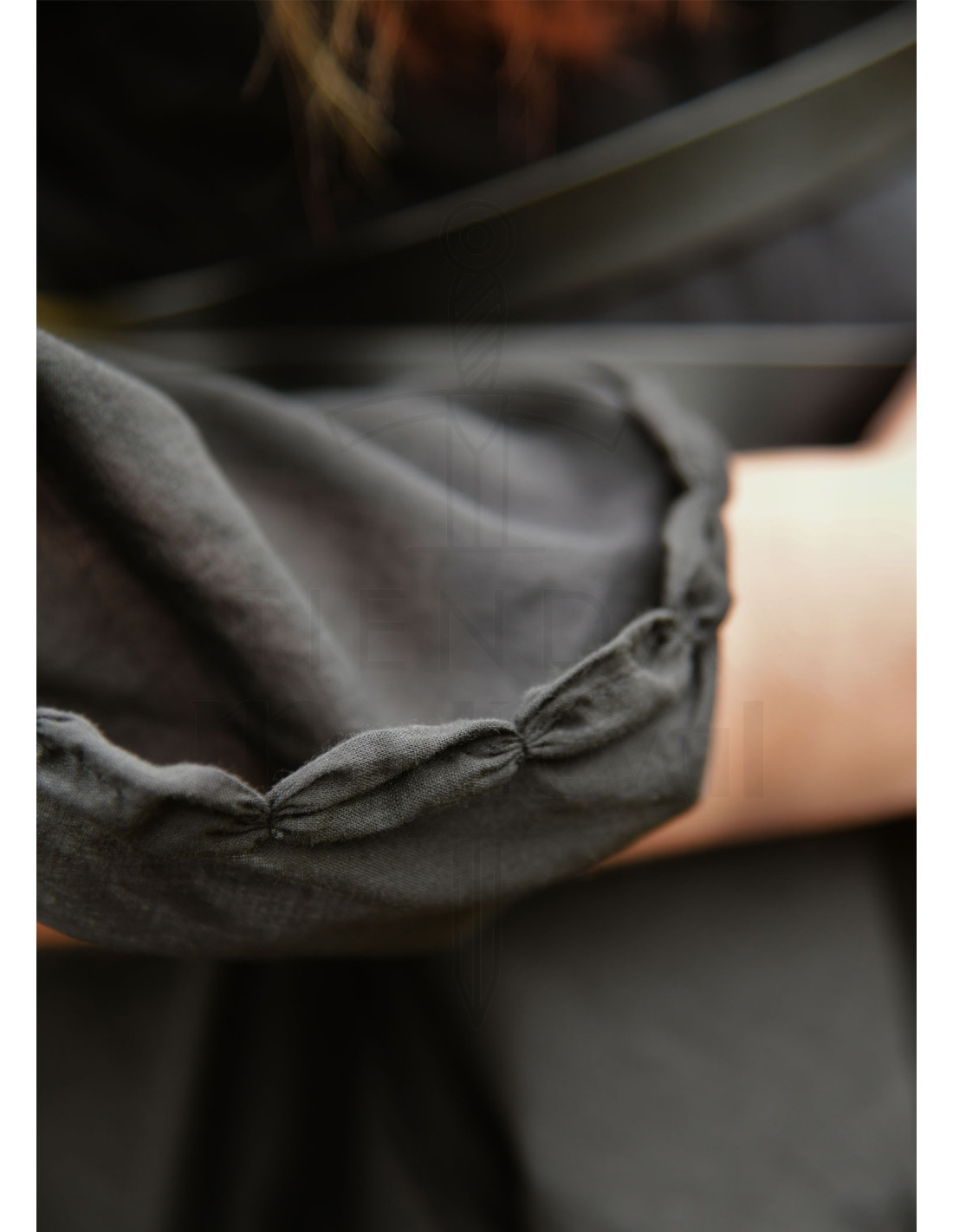 Un guiño a la historia, las mangas amplias y las prendas interiores similares eran ya símbolo de estatus en la Alta Edad Media, y en el siglo XV se mostraban bajo cotehardies más ceñidos, otorgando al conjunto un carácter auténtico y con raíces documentadas en frescos y manuscritos medievales.