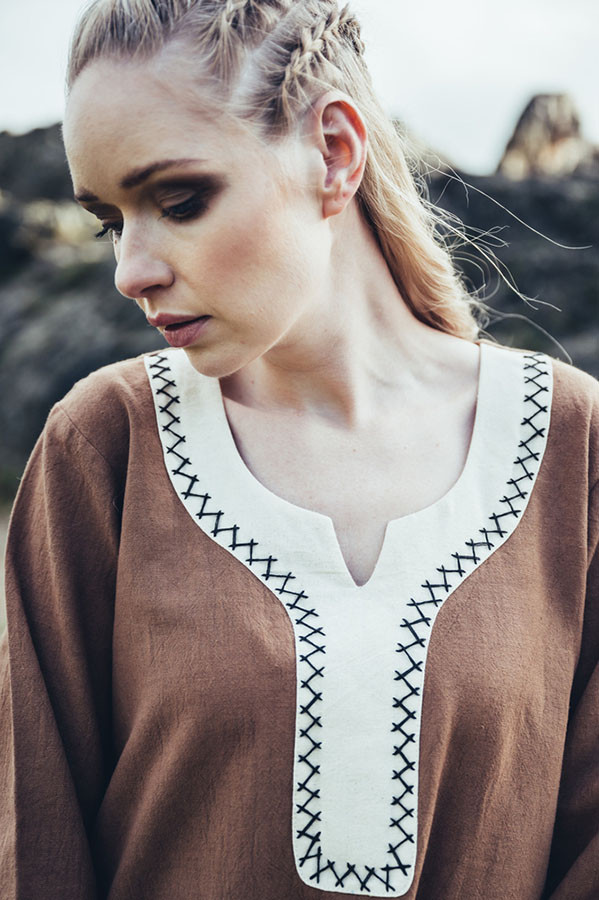 Vestido mujer vikinga Jorunn, Marrón y Beige